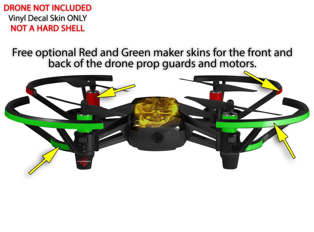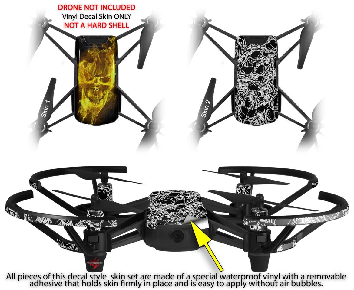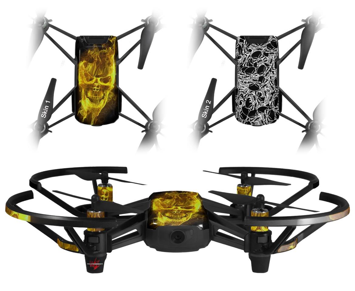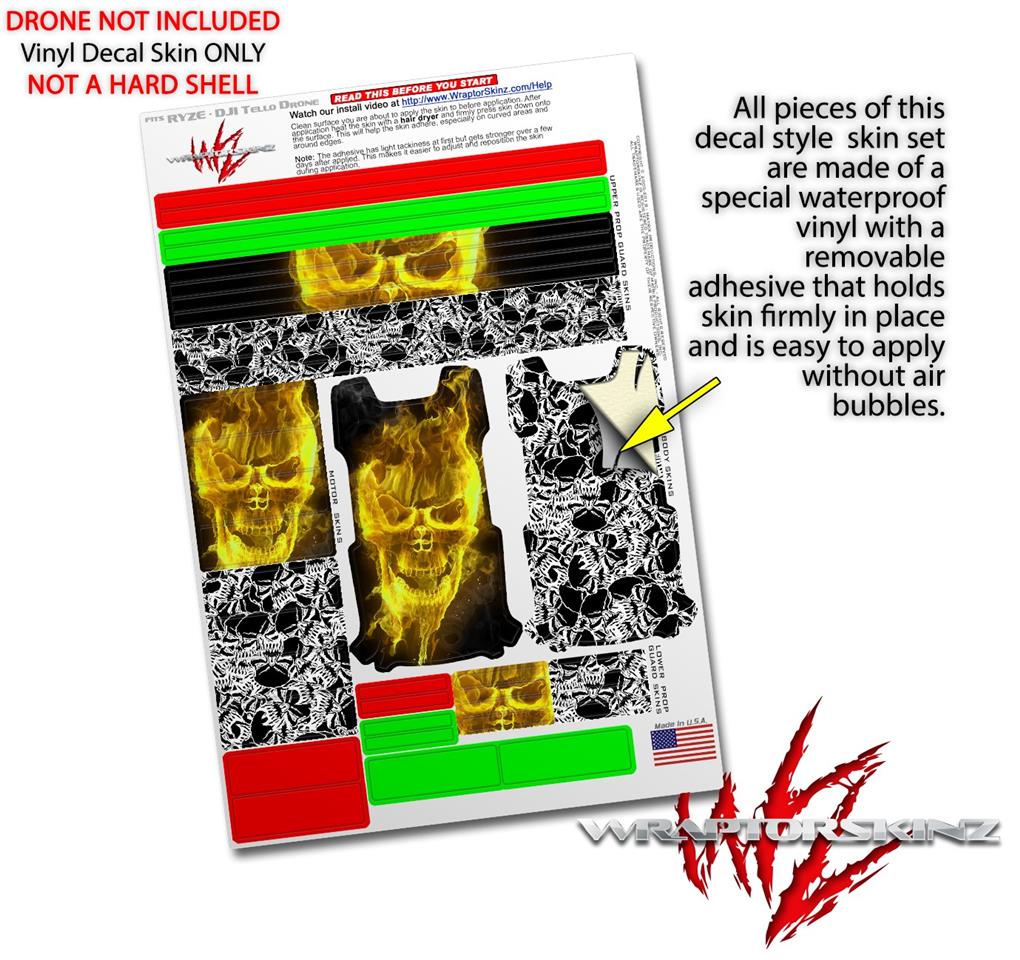 Skin Decal Wrap 2 Pack for DJI Ryze Tello Drone Flaming Fire Skull Yellow DRONE NOT INCLUDED