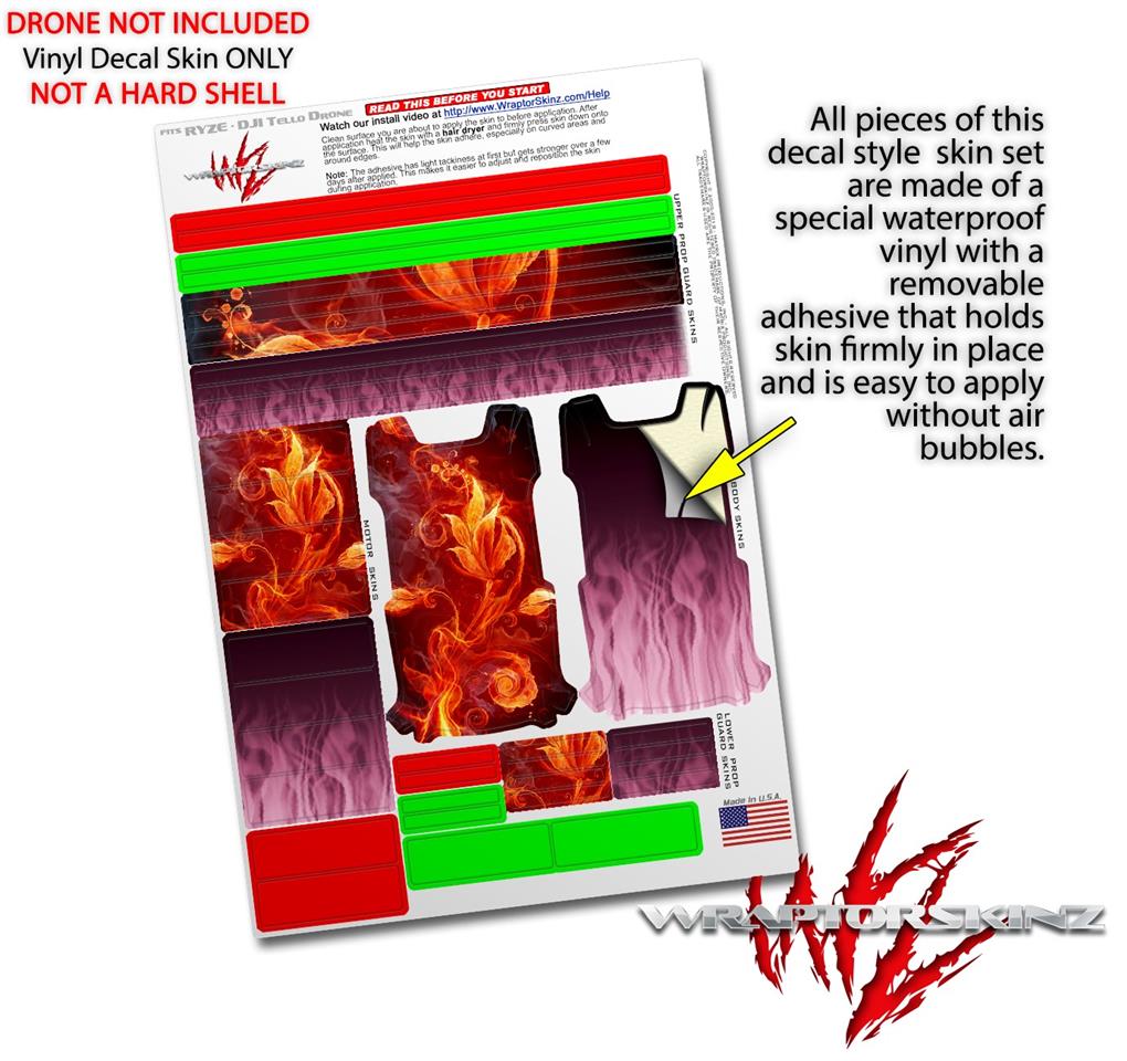 Skin Decal Wrap 2 Pack for DJI Ryze Tello Drone Fire Flower DRONE NOT INCLUDED