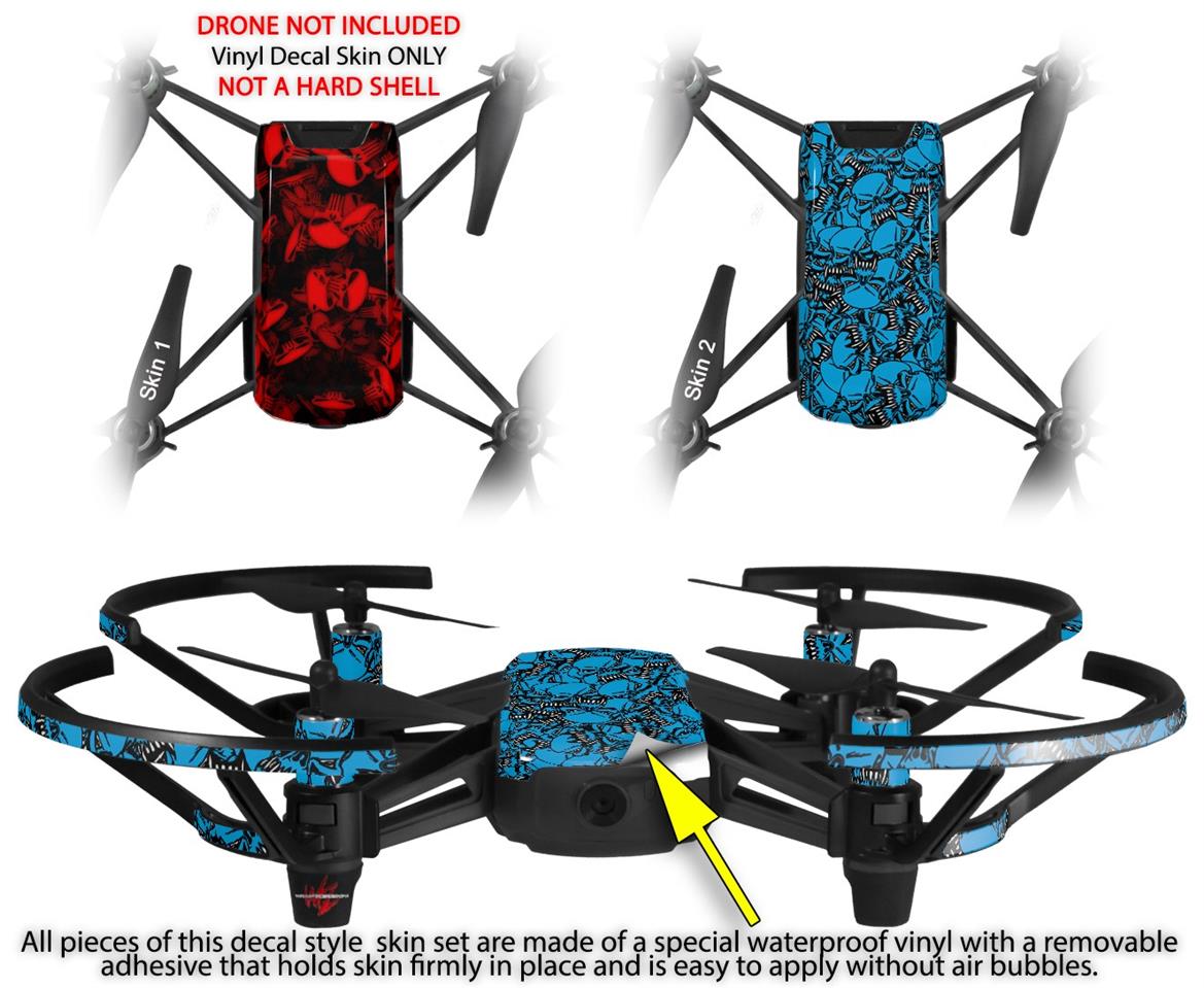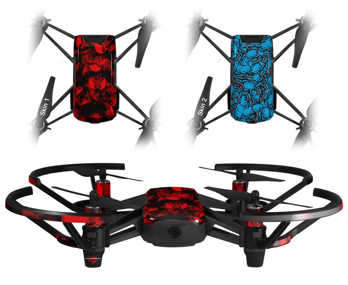 Skin Decal Wrap 2 Pack for DJI Ryze Tello Drone Skulls Confetti Red DRONE NOT INCLUDED