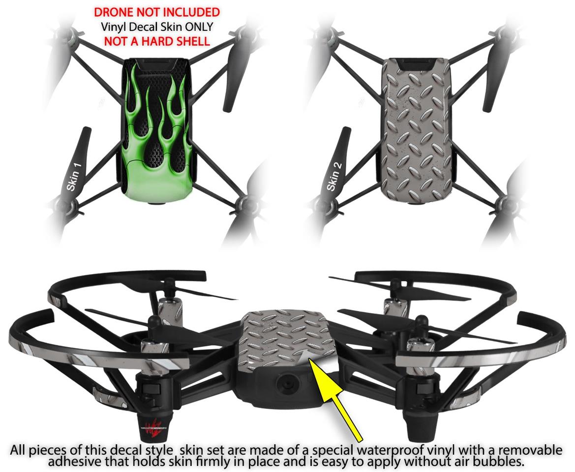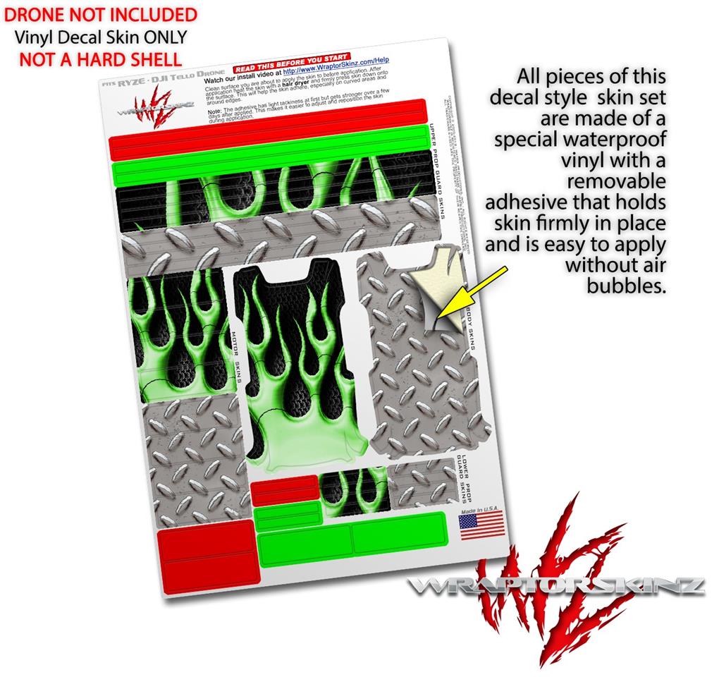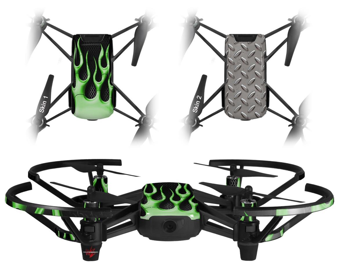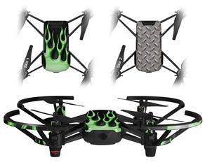 Skin Decal Wrap 2 Pack for DJI Ryze Tello Drone Metal Flames Green DRONE NOT INCLUDED