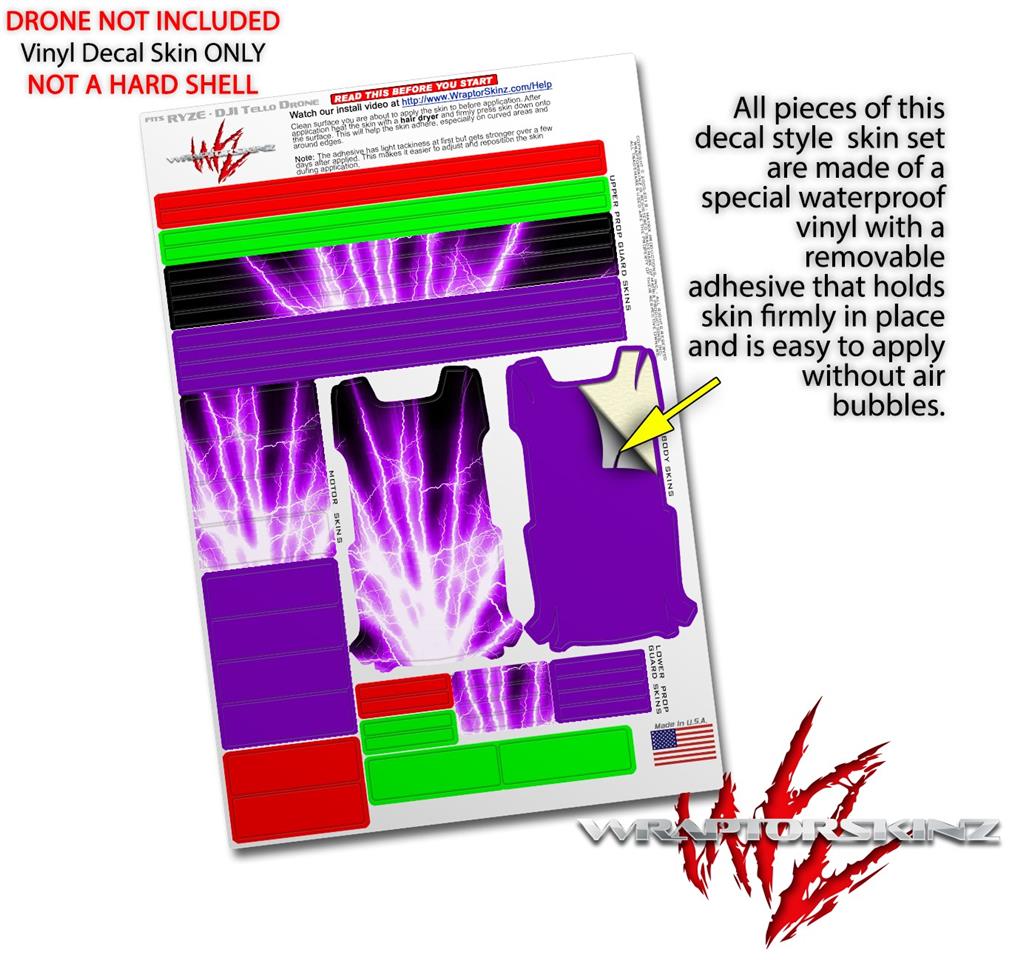 Skin Decal Wrap 2 Pack for DJI Ryze Tello Drone Lightning Purple DRONE NOT INCLUDED