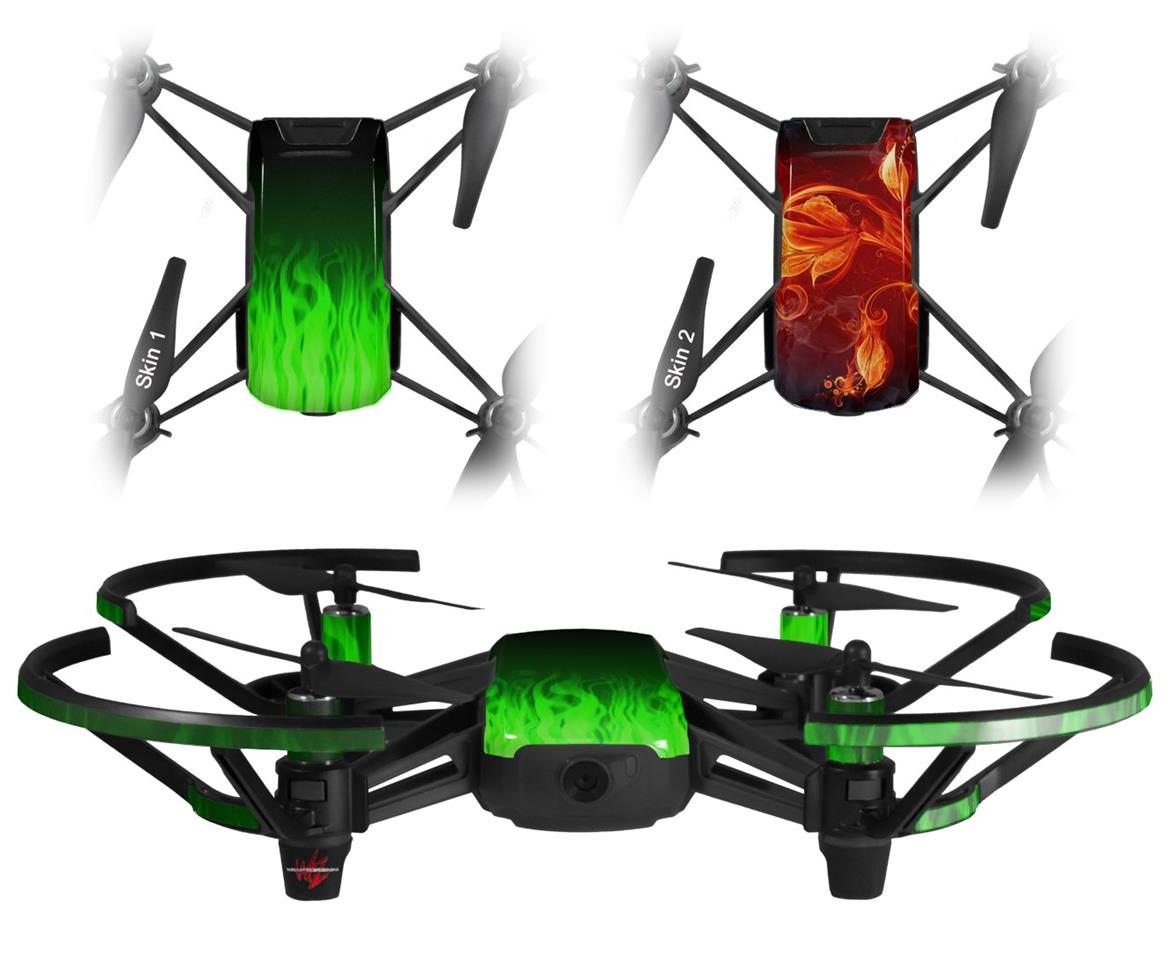 Skin Decal Wrap 2 Pack for DJI Ryze Tello Drone Fire Green DRONE NOT INCLUDED