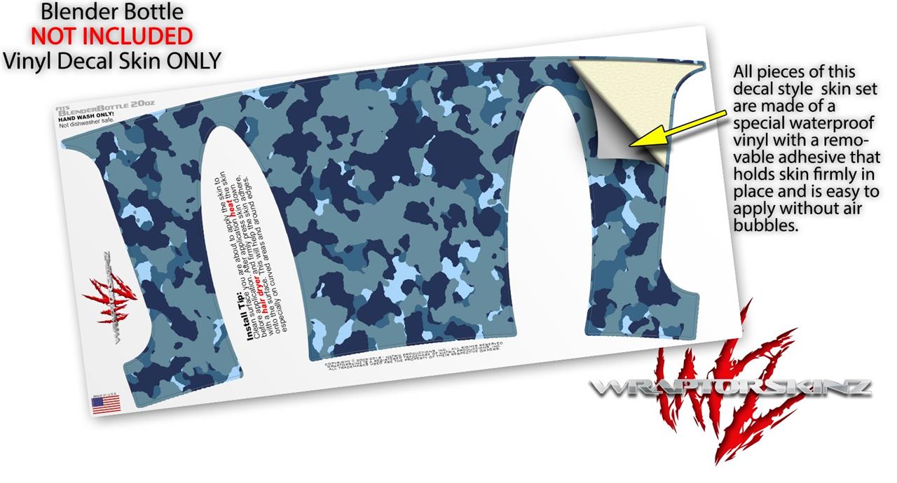 Decal Style Skin Wrap works with Blender Bottle 20oz WraptorCamo Old School Camouflage Camo Navy (BOTTLE NOT INCLUDED)
