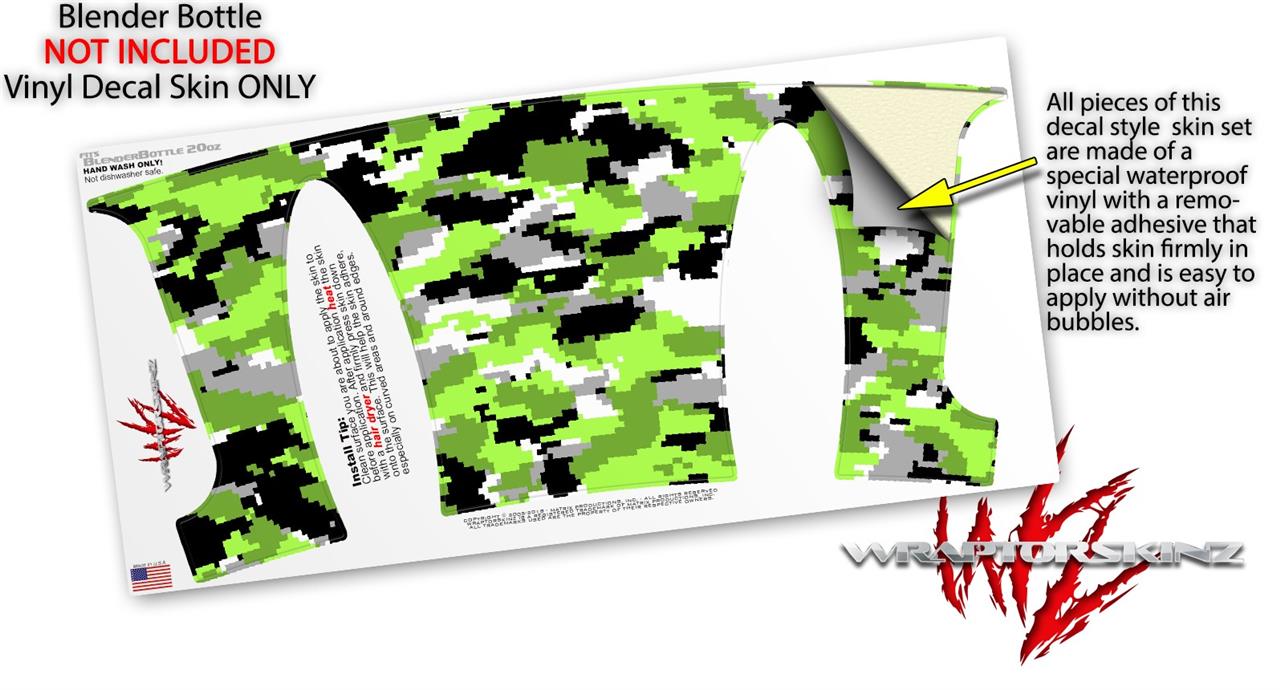 Decal Style Skin Wrap works with Blender Bottle 20oz WraptorCamo Digital Camo Neon Green (BOTTLE NOT INCLUDED)