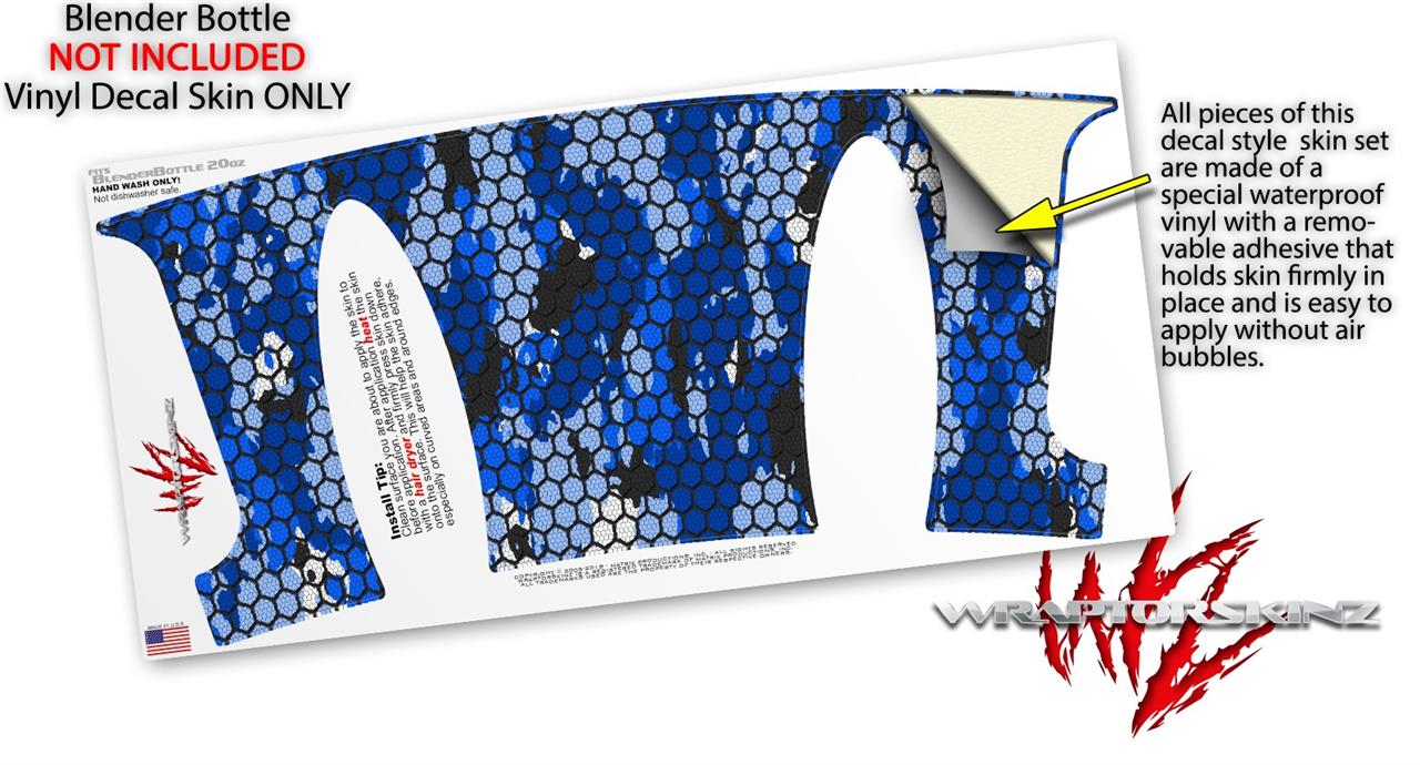 Decal Style Skin Wrap works with Blender Bottle 20oz HEX Mesh Camo 01 Blue Bright (BOTTLE NOT INCLUDED)
