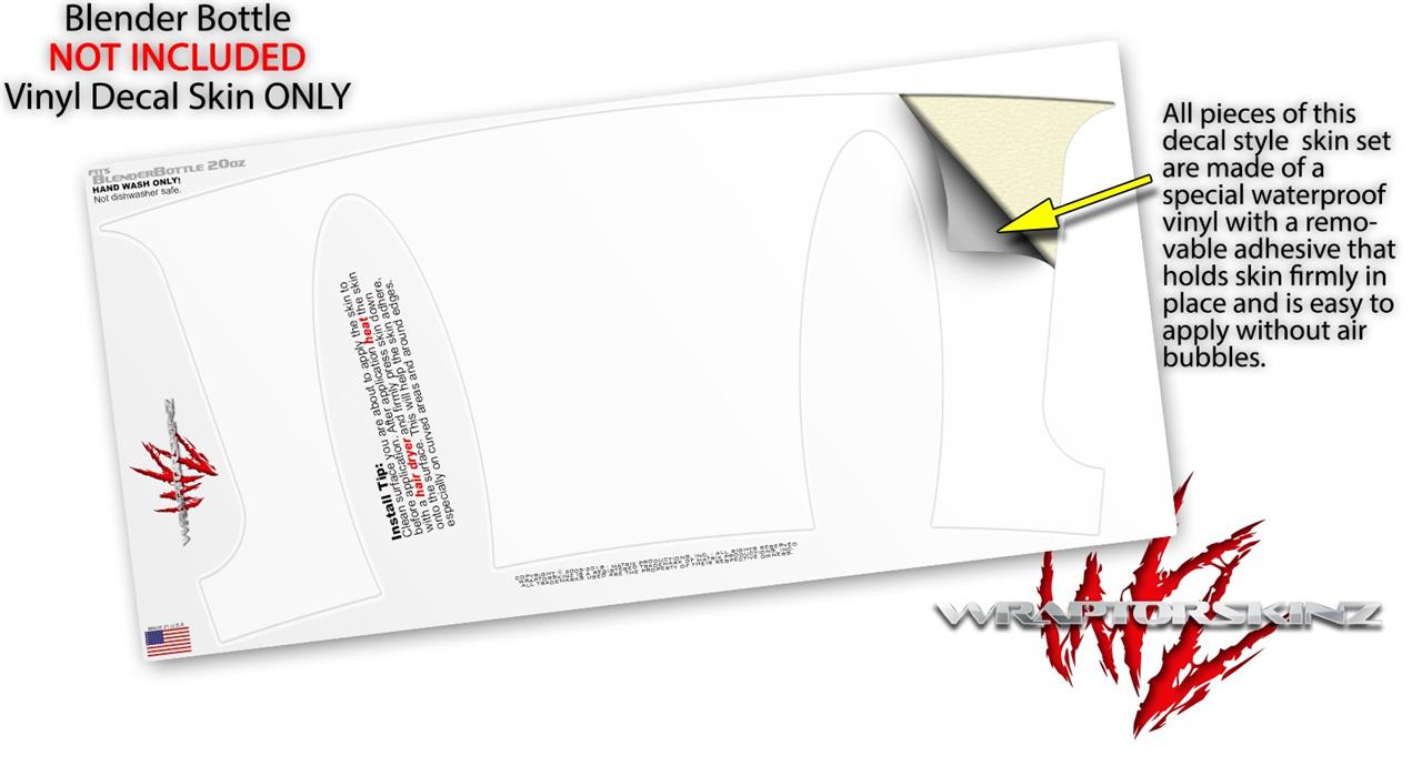 WraptorSkinz® skin wraps work with BlenderBottles, printed using superb photo quality designs and vibrant colors printed with special fade resistant inks that last even in direct sun for years. WraptorSkinz are a composite of two layers of commercial grade materials. The bottom layer is a soft, flexible vinyl with a special removable adhesive that is easily positioned, applied without air bubbles. Next, we print the bottom layer with UV protected, fade resistant inks that deliver superb photo quality designs in vibrant colors. Finally, we bond a professional grade laminate over the entire skin adding a glossy protective finish. This product is not created by, affiliated with or endorsed by Blender Bottle.