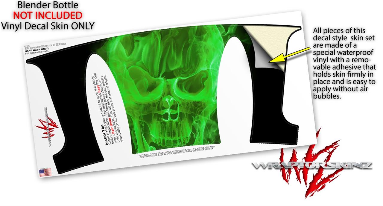 Decal Style Skin Wrap works with Blender Bottle 20oz Flaming Fire Skull Green (BOTTLE NOT INCLUDED)