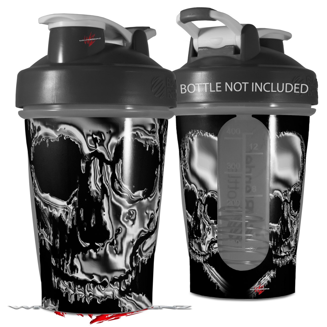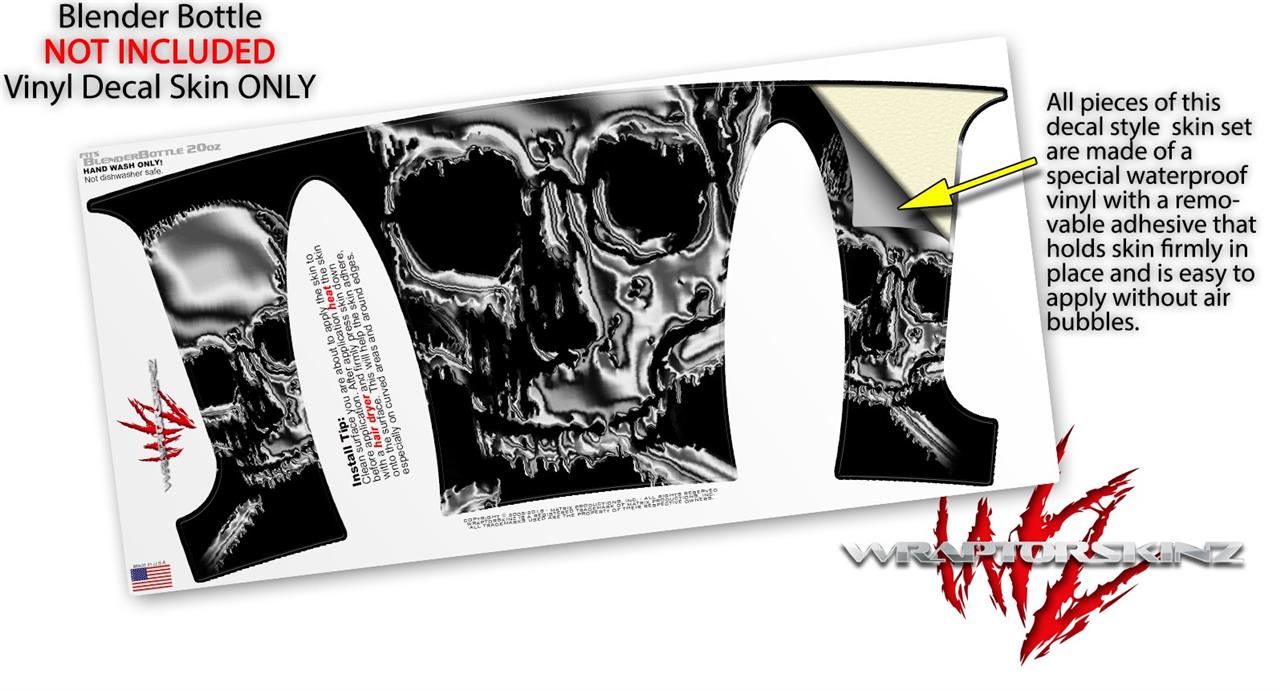 Decal Style Skin Wrap works with Blender Bottle 20oz Chrome Skull on Black (BOTTLE NOT INCLUDED)