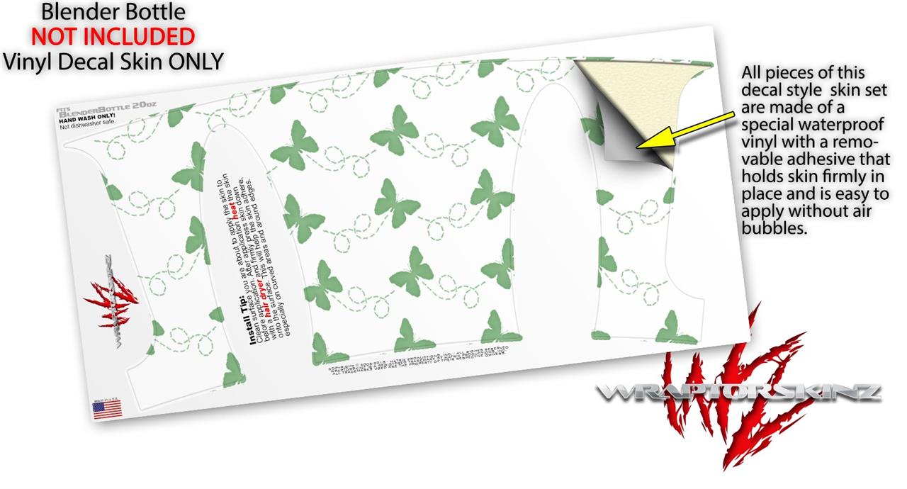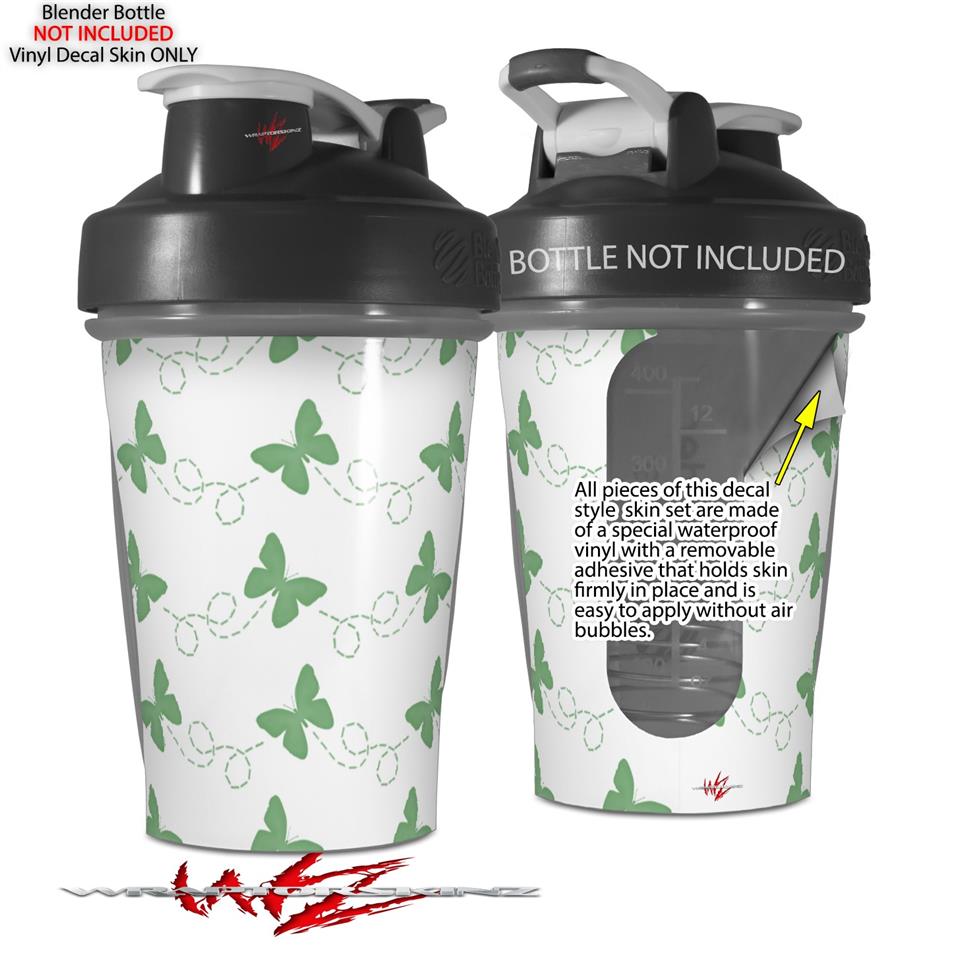 Decal Style Skin Wrap works with Blender Bottle 20oz Pastel Butterflies Green on White (BOTTLE NOT INCLUDED)