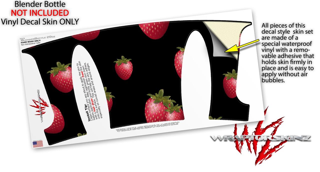 Decal Style Skin Wrap works with Blender Bottle 20oz Strawberries on Black (BOTTLE NOT INCLUDED)