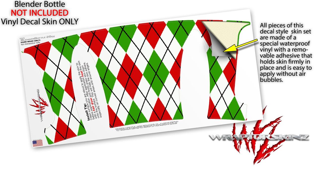Decal Style Skin Wrap works with Blender Bottle 20oz Argyle Red and Green (BOTTLE NOT INCLUDED)