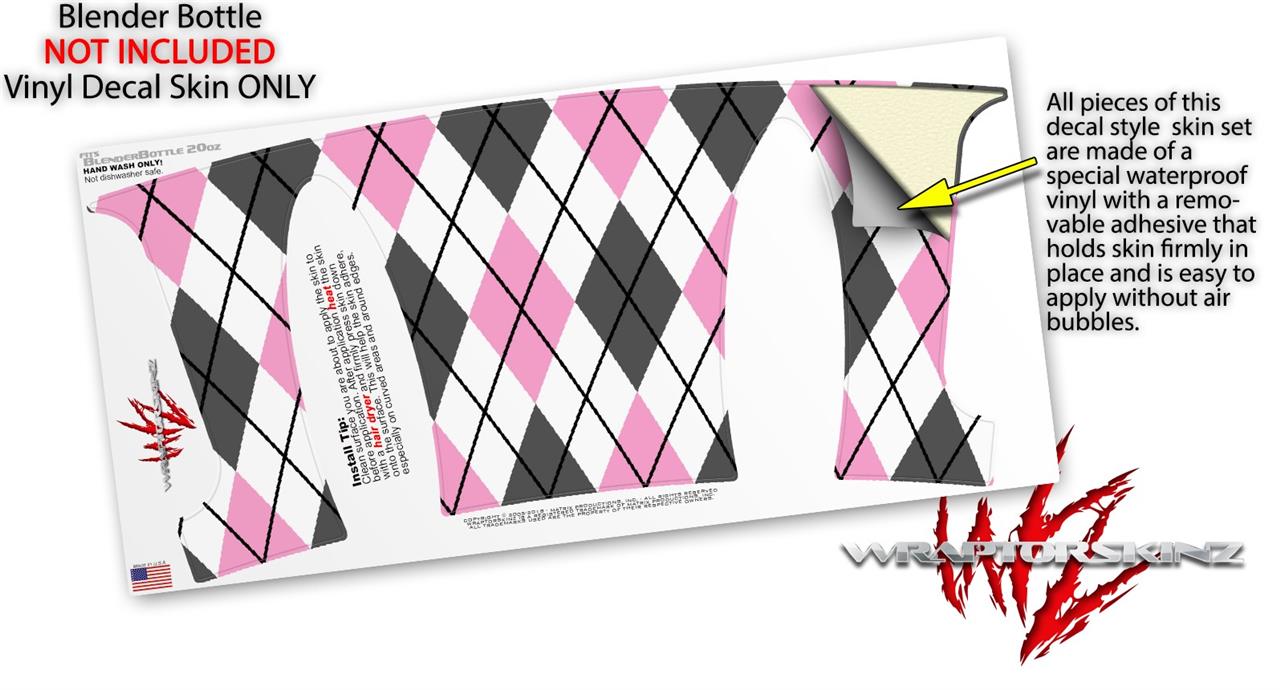 Decal Style Skin Wrap works with Blender Bottle 20oz Argyle Pink and Gray (BOTTLE NOT INCLUDED)