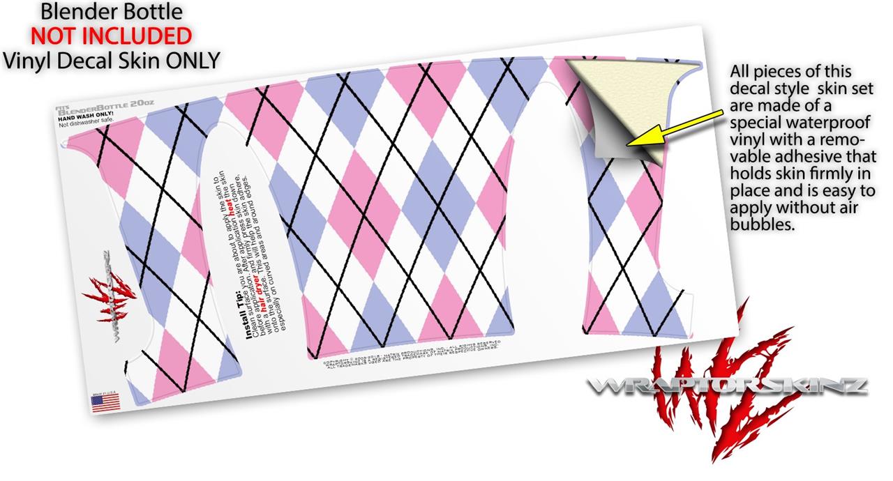 Decal Style Skin Wrap works with Blender Bottle 20oz Argyle Pink and Blue (BOTTLE NOT INCLUDED)