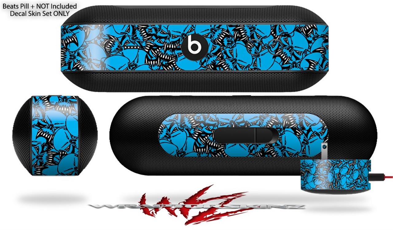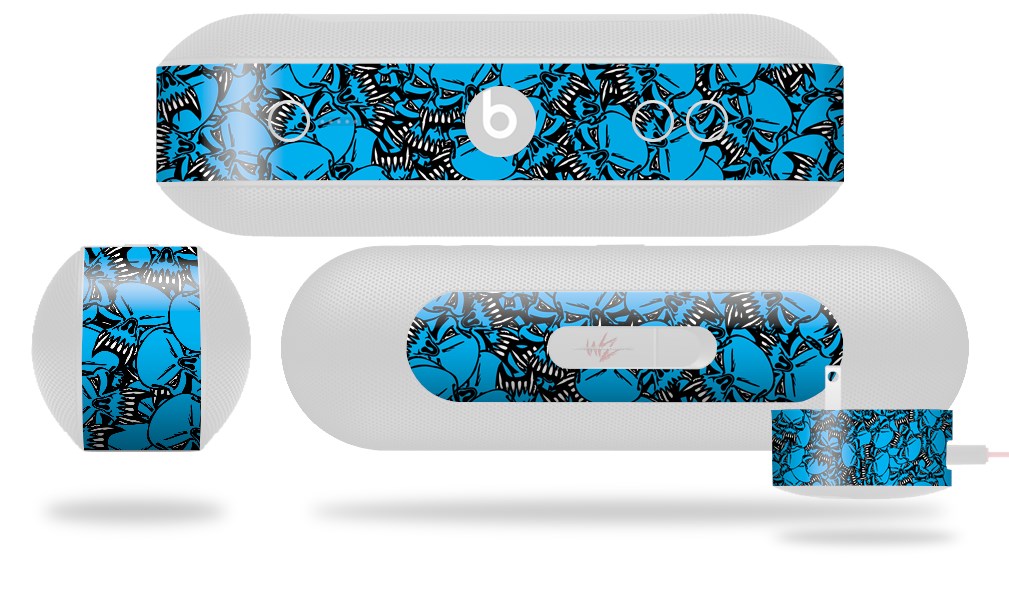 Decal Style Wrap Skin works with Beats Pill Plus Speaker Scattered Skulls Neon Blue Skin Only (BEATS PILL NOT INCLUDED)