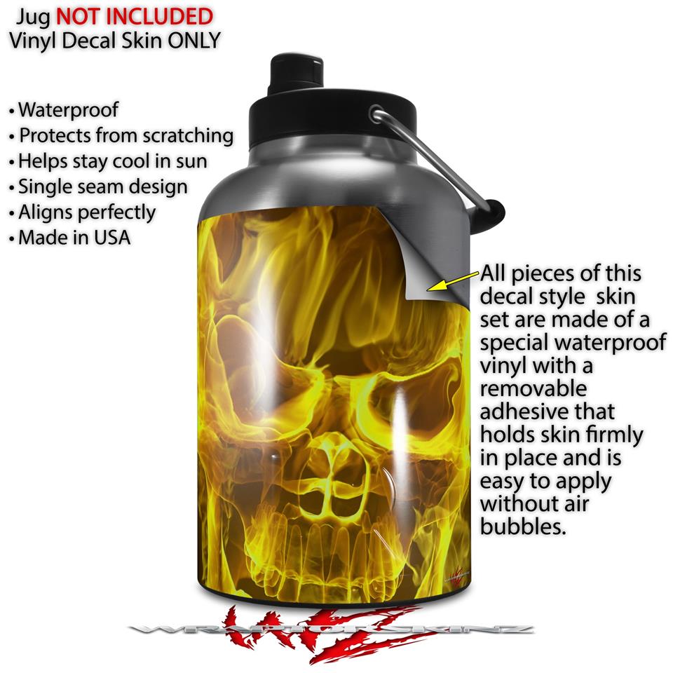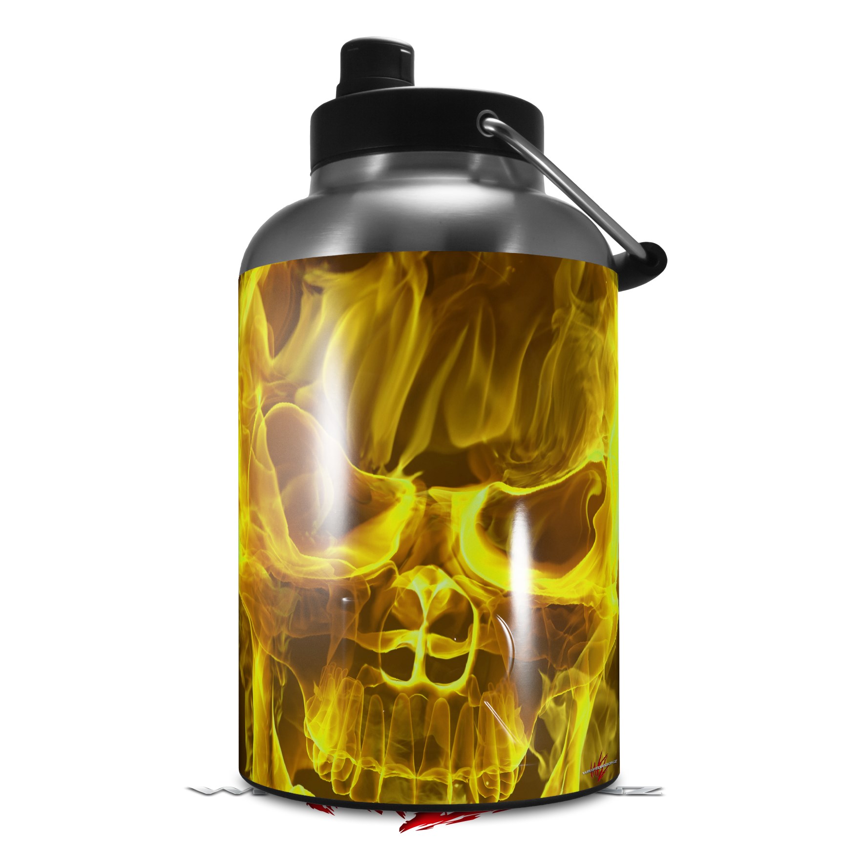 Skin Decal Wrap for 2017 RTIC One Gallon Jug Flaming Fire Skull Yellow (Jug NOT INCLUDED) by WraptorSkinz