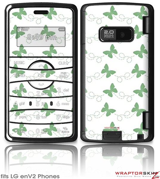 LG enV2 Skin - Pastel Butterflies Green on White