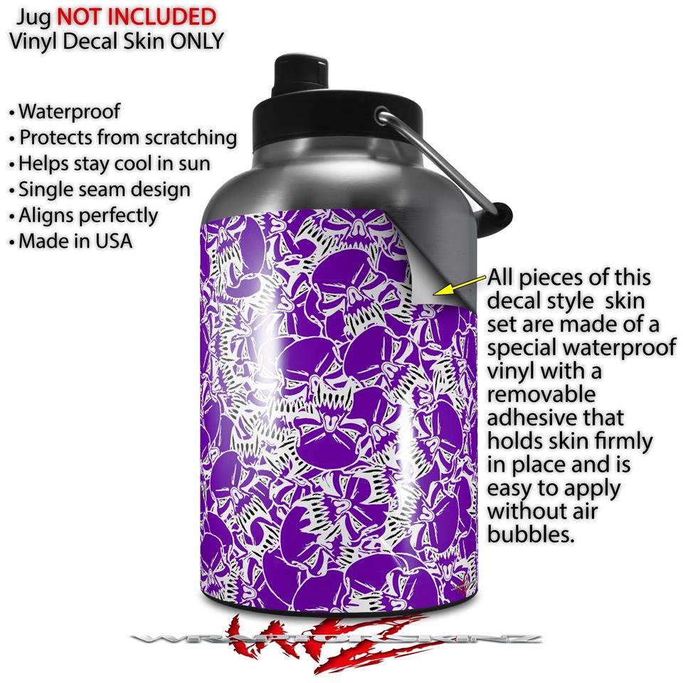 Skin Decal Wrap for 2017 RTIC One Gallon Jug Scattered Skulls Purple (Jug NOT INCLUDED) by WraptorSkinz