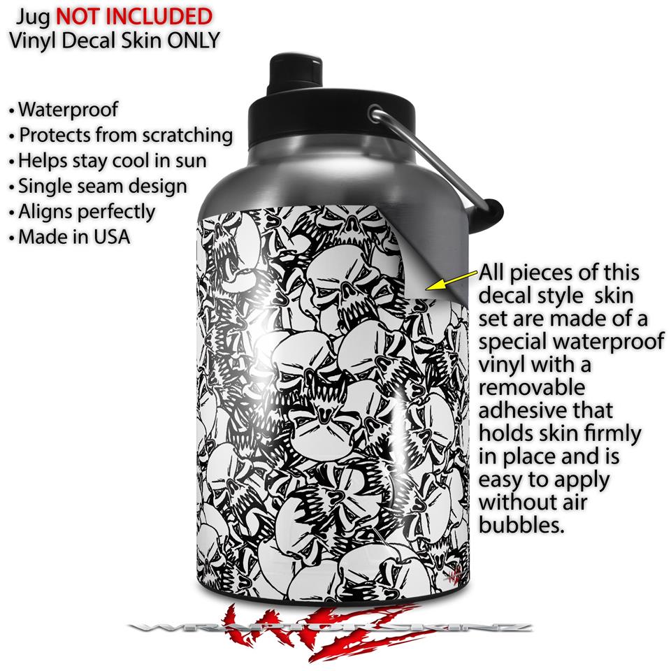 Skin Decal Wrap for 2017 RTIC One Gallon Jug Scattered Skulls White (Jug NOT INCLUDED) by WraptorSkinz