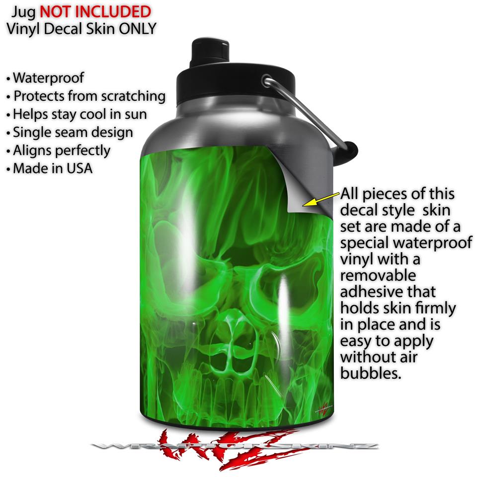 Skin Decal Wrap for 2017 RTIC One Gallon Jug Flaming Fire Skull Green (Jug NOT INCLUDED) by WraptorSkinz