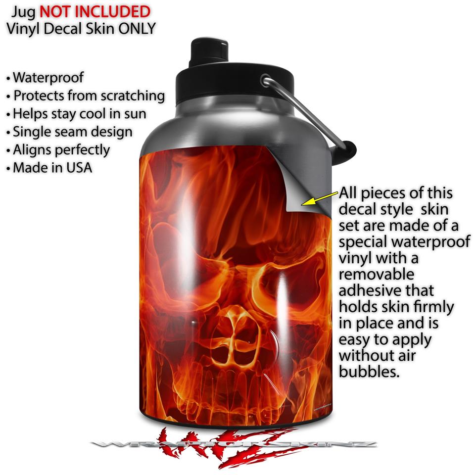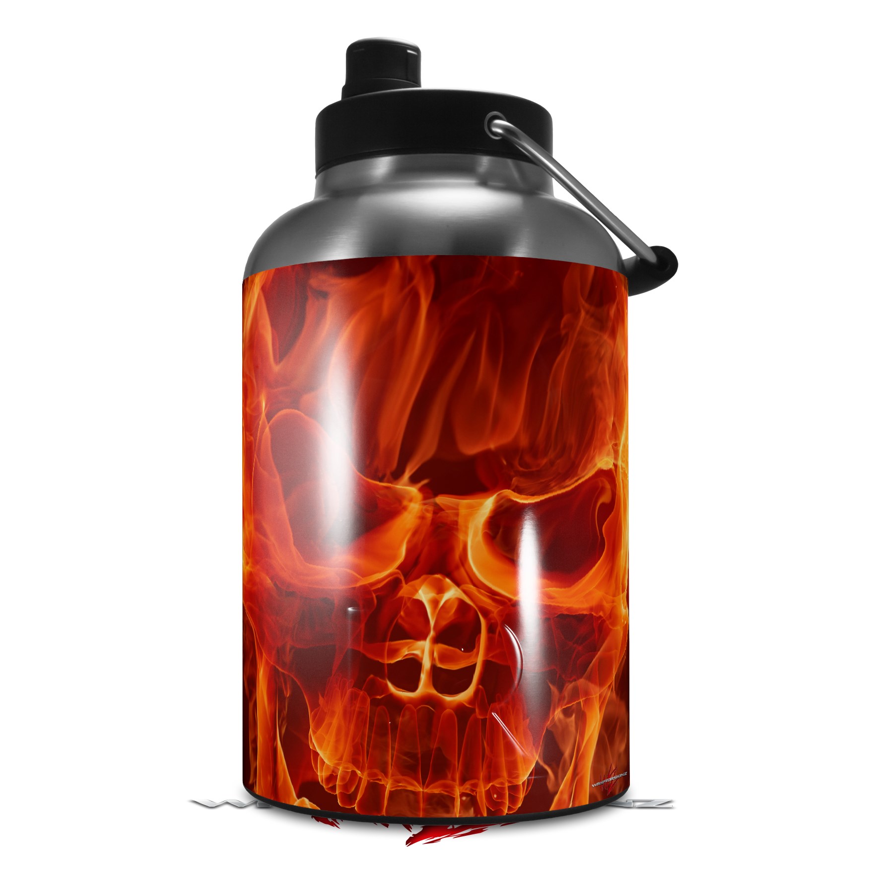 Skin Decal Wrap for 2017 RTIC One Gallon Jug Flaming Fire Skull Orange (Jug NOT INCLUDED) by WraptorSkinz