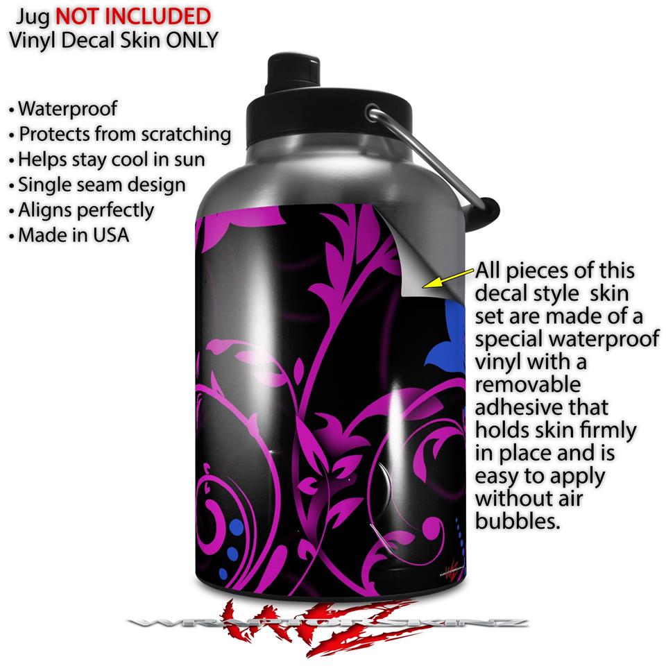 Skin Decal Wrap for 2017 RTIC One Gallon Jug Twisted Garden Hot Pink and Blue (Jug NOT INCLUDED) by WraptorSkinz
