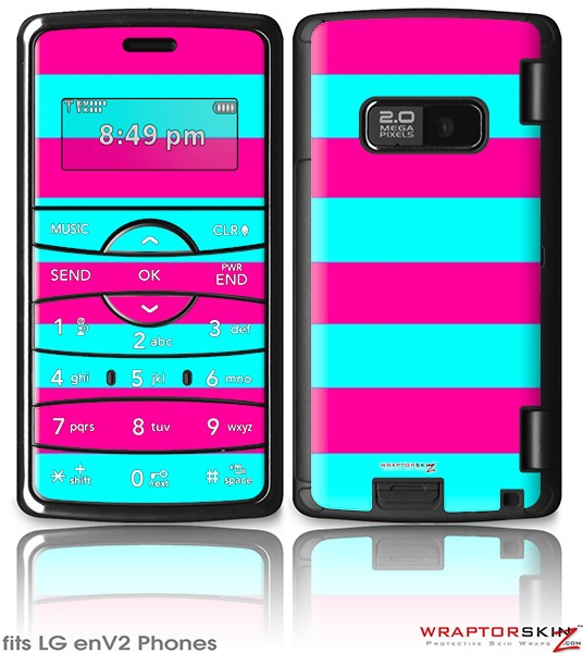 LG enV2 Skin - Kearas Psycho Stripes Neon Teal and Hot Pink