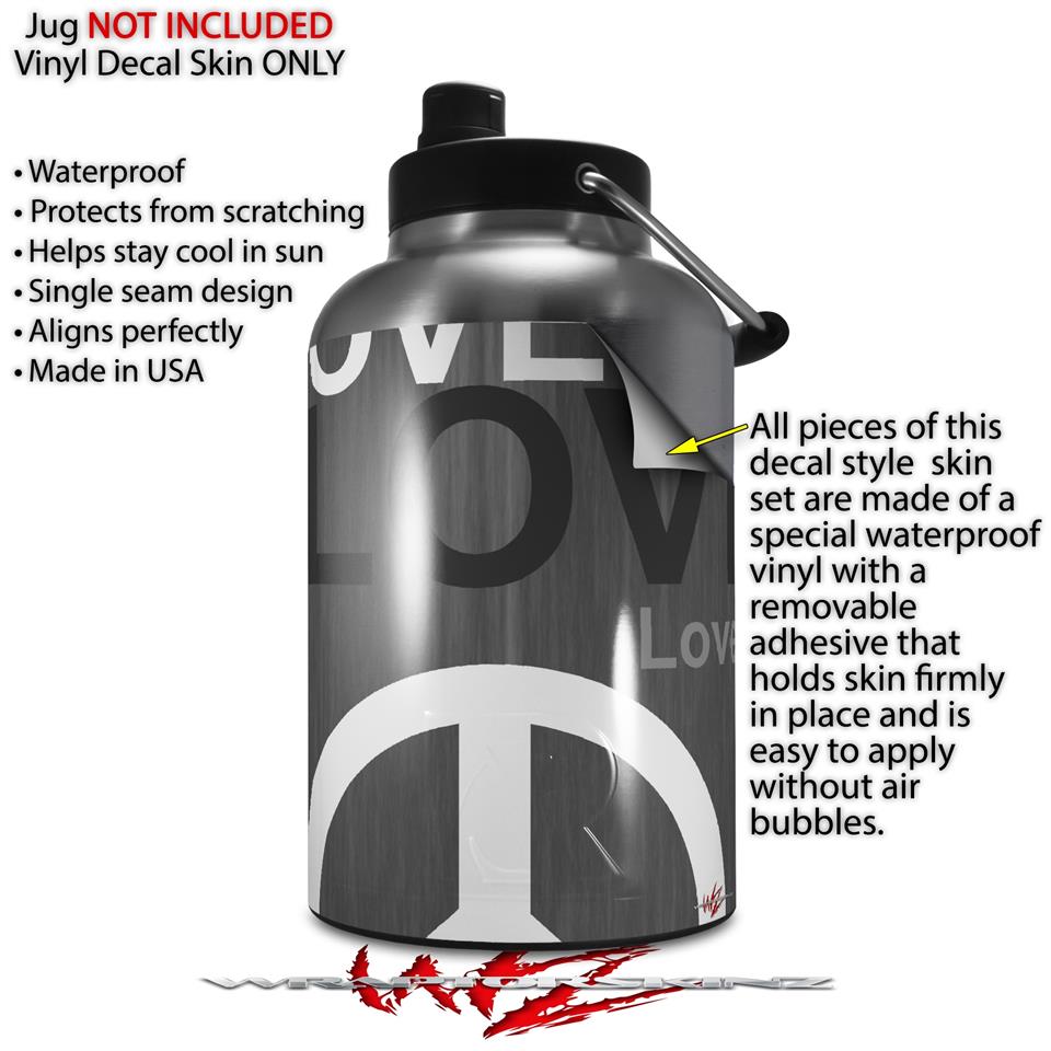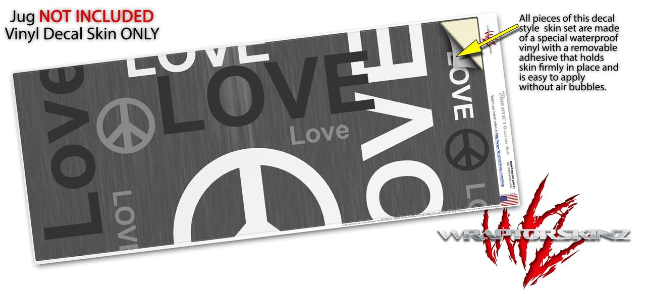 Skin Decal Wrap for 2017 RTIC One Gallon Jug Love and Peace Gray (Jug NOT INCLUDED) by WraptorSkinz