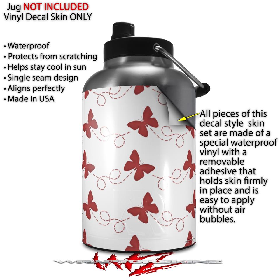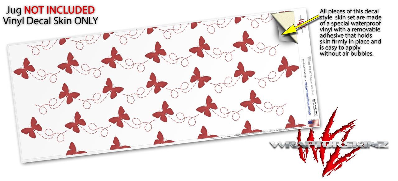Skin Decal Wrap for 2017 RTIC One Gallon Jug Pastel Butterflies Red on White (Jug NOT INCLUDED) by WraptorSkinz