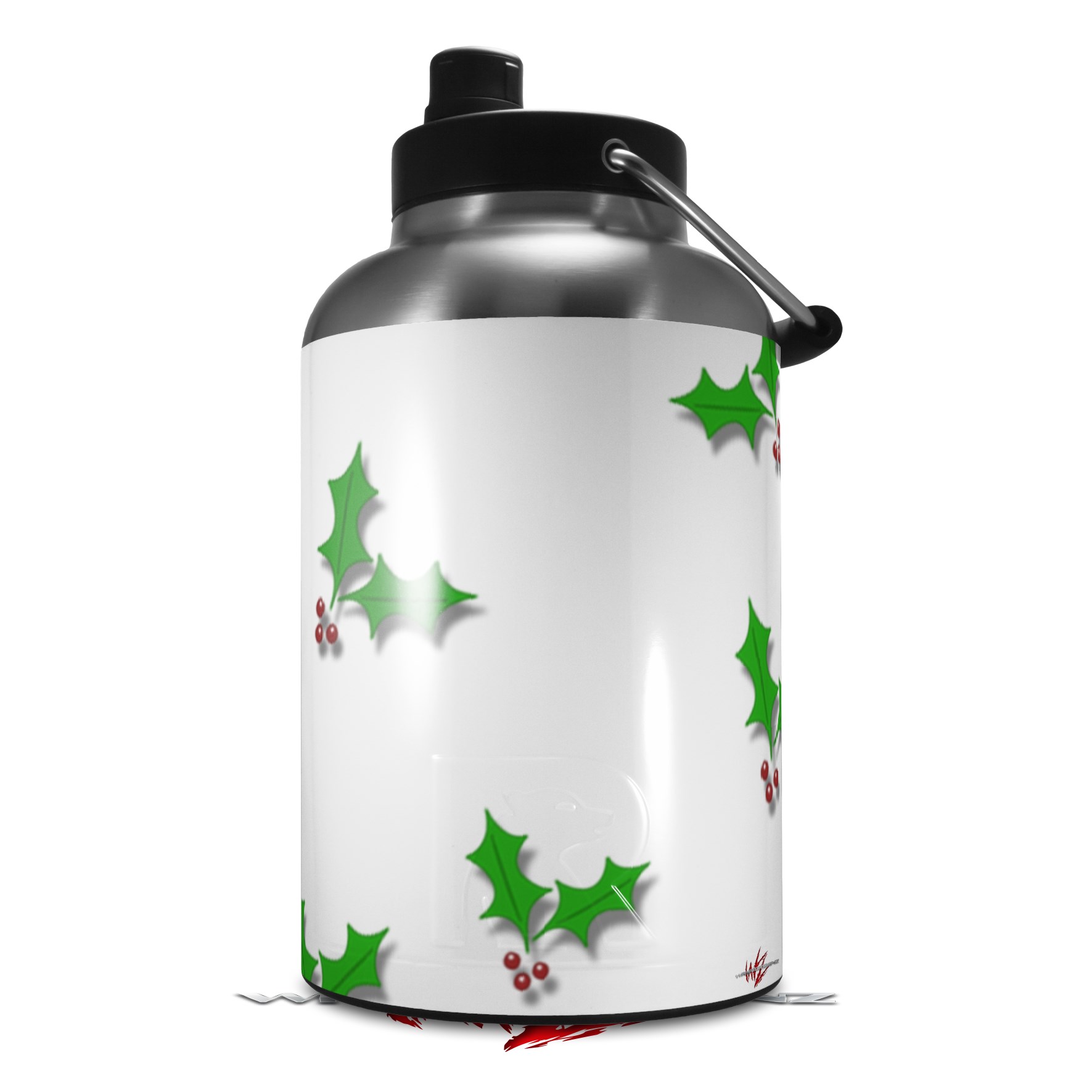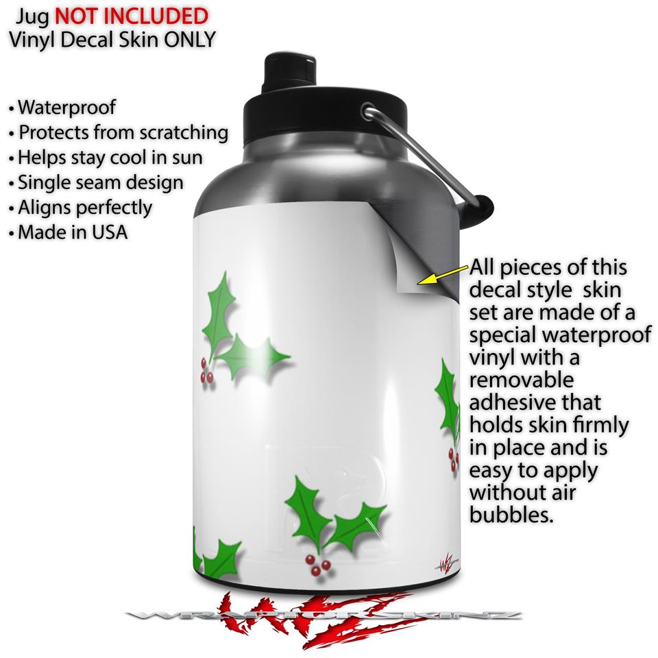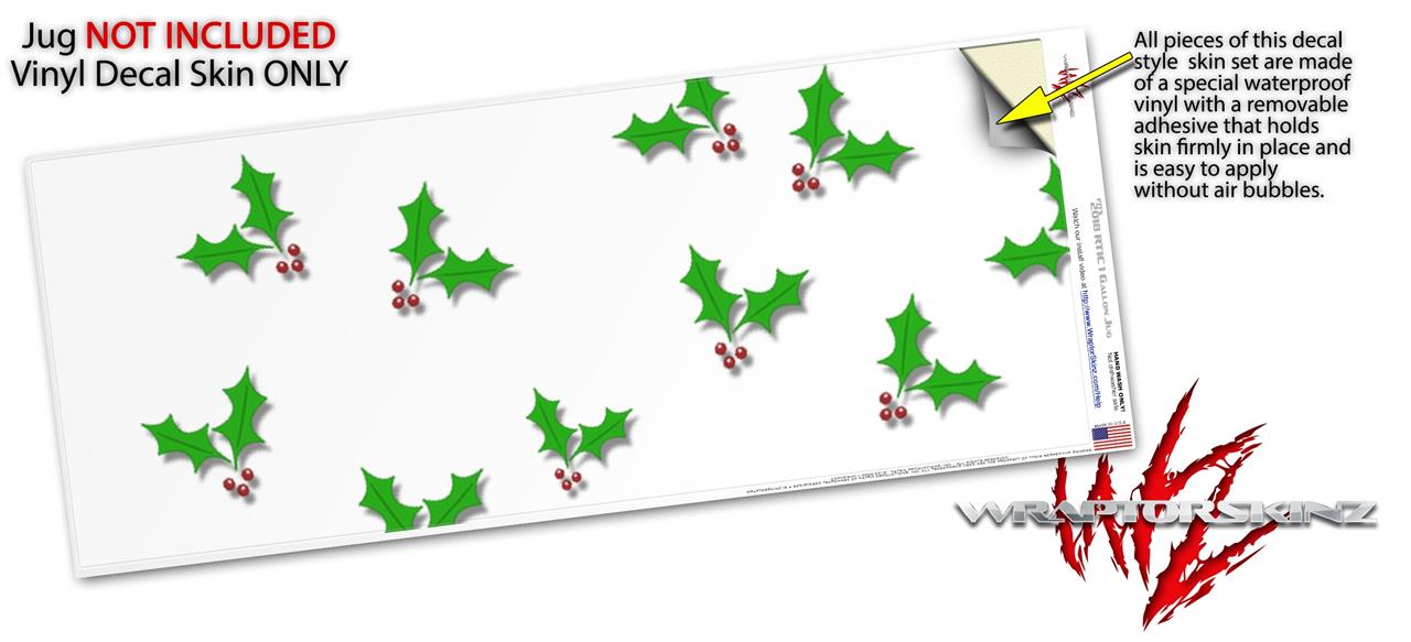 Skin Decal Wrap for 2017 RTIC One Gallon Jug Christmas Holly Leaves on White (Jug NOT INCLUDED) by WraptorSkinz
