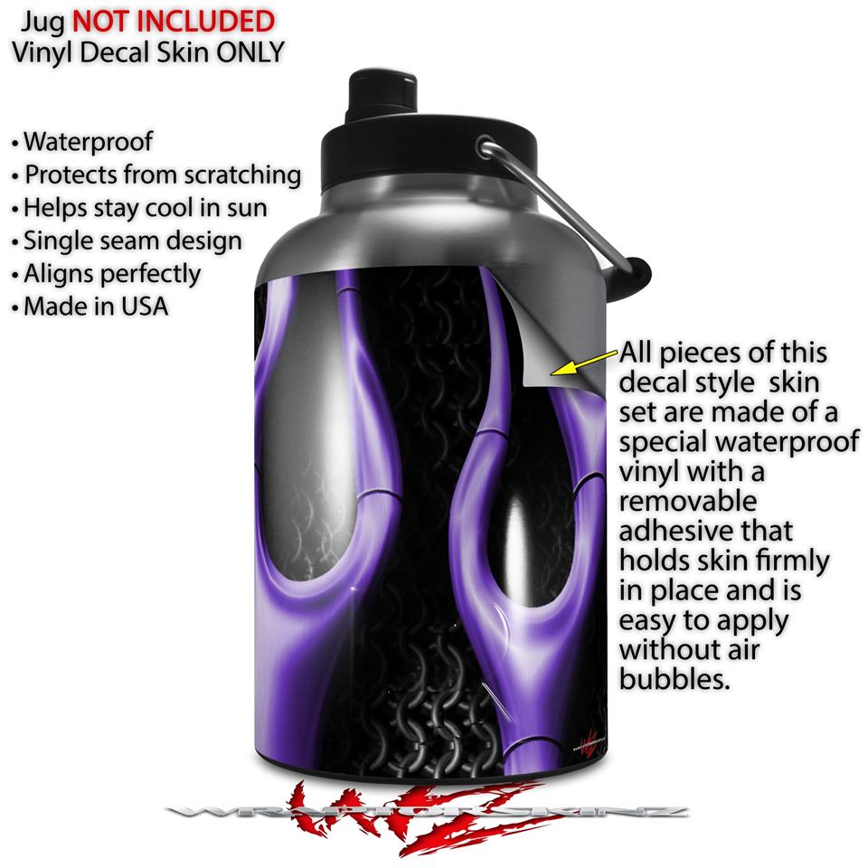 Skin Decal Wrap for 2017 RTIC One Gallon Jug Metal Flames Purple (Jug NOT INCLUDED) by WraptorSkinz