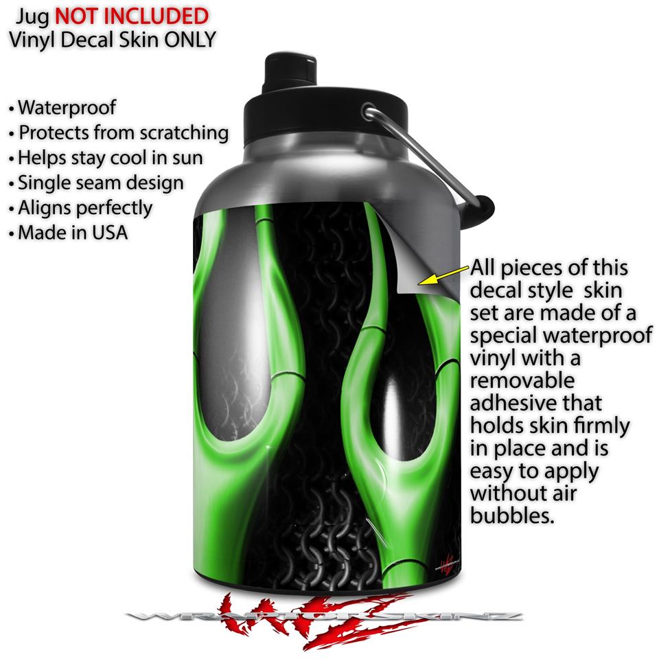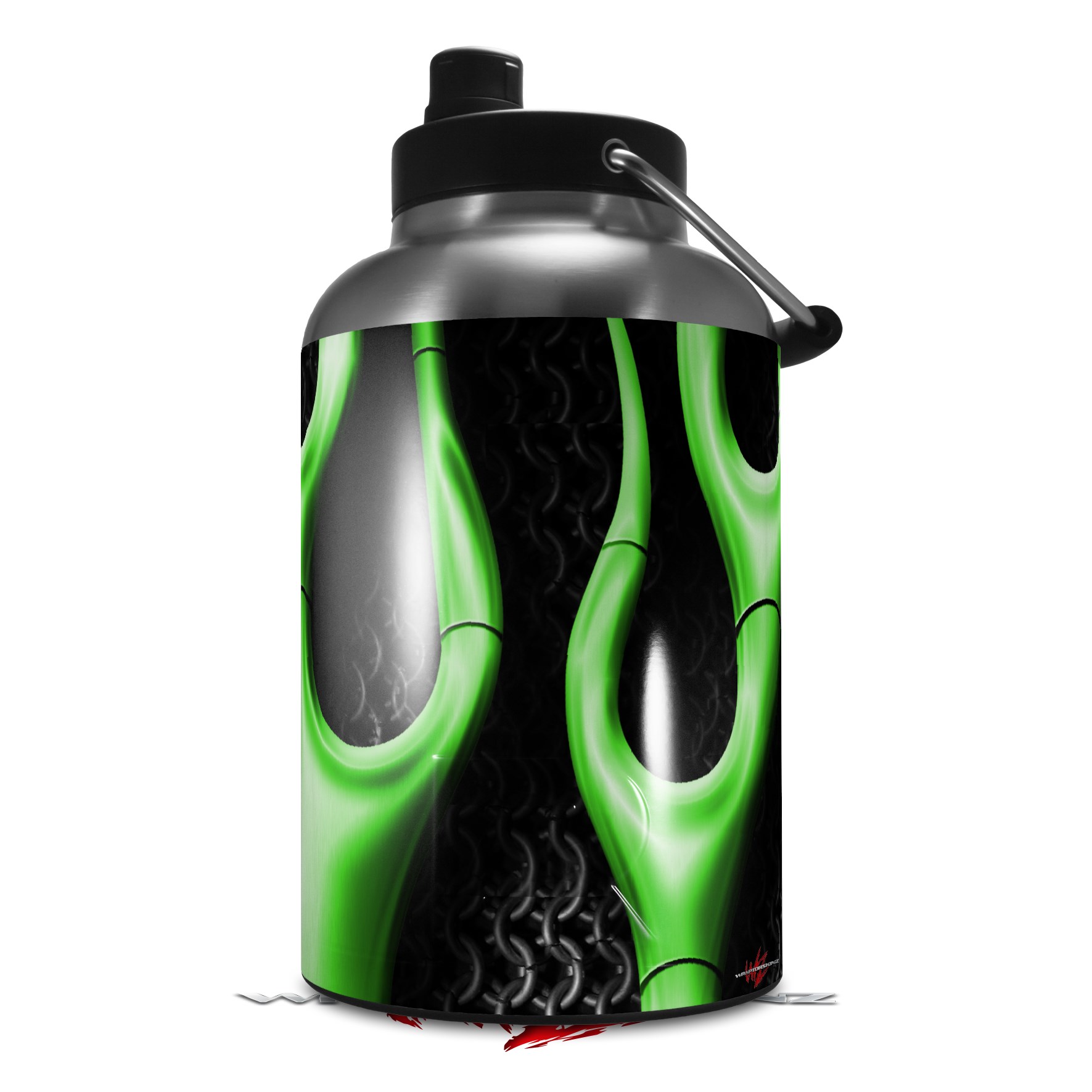 Skin Decal Wrap for 2017 RTIC One Gallon Jug Metal Flames Green (Jug NOT INCLUDED) by WraptorSkinz