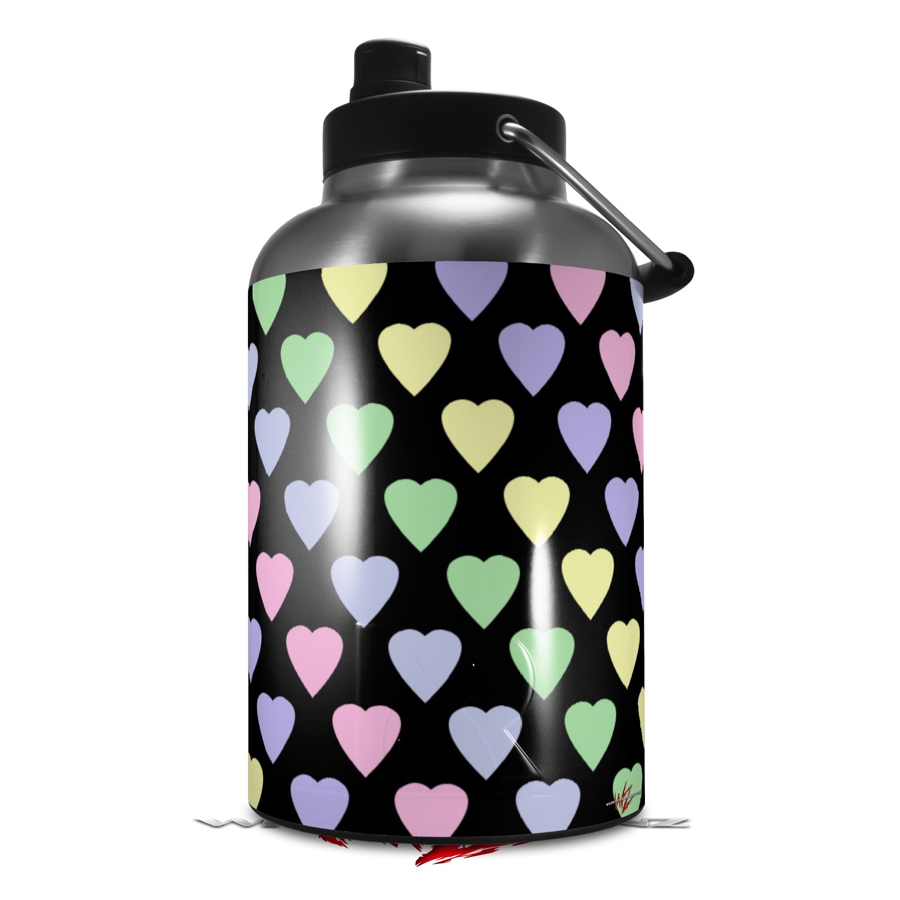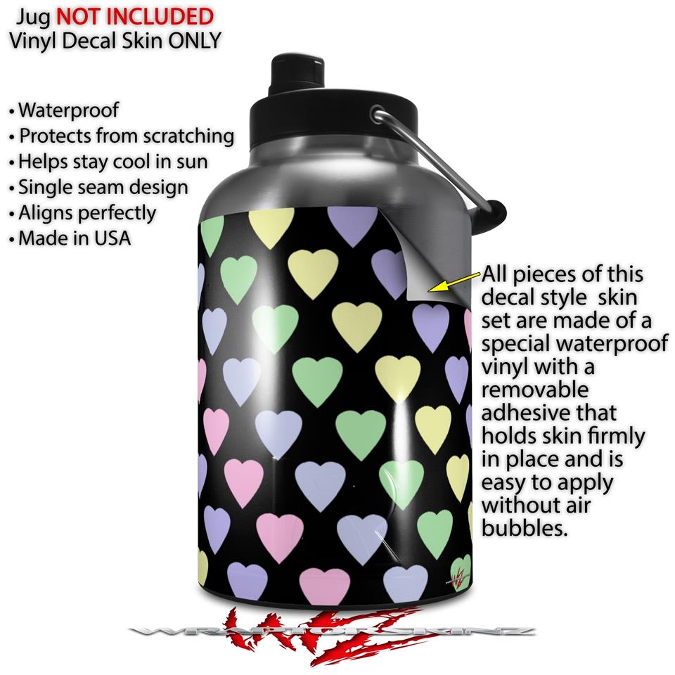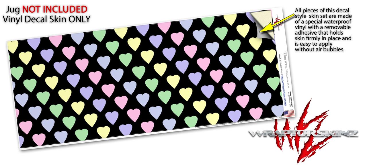 Skin Decal Wrap for 2017 RTIC One Gallon Jug Pastel Hearts on Black (Jug NOT INCLUDED) by WraptorSkinz