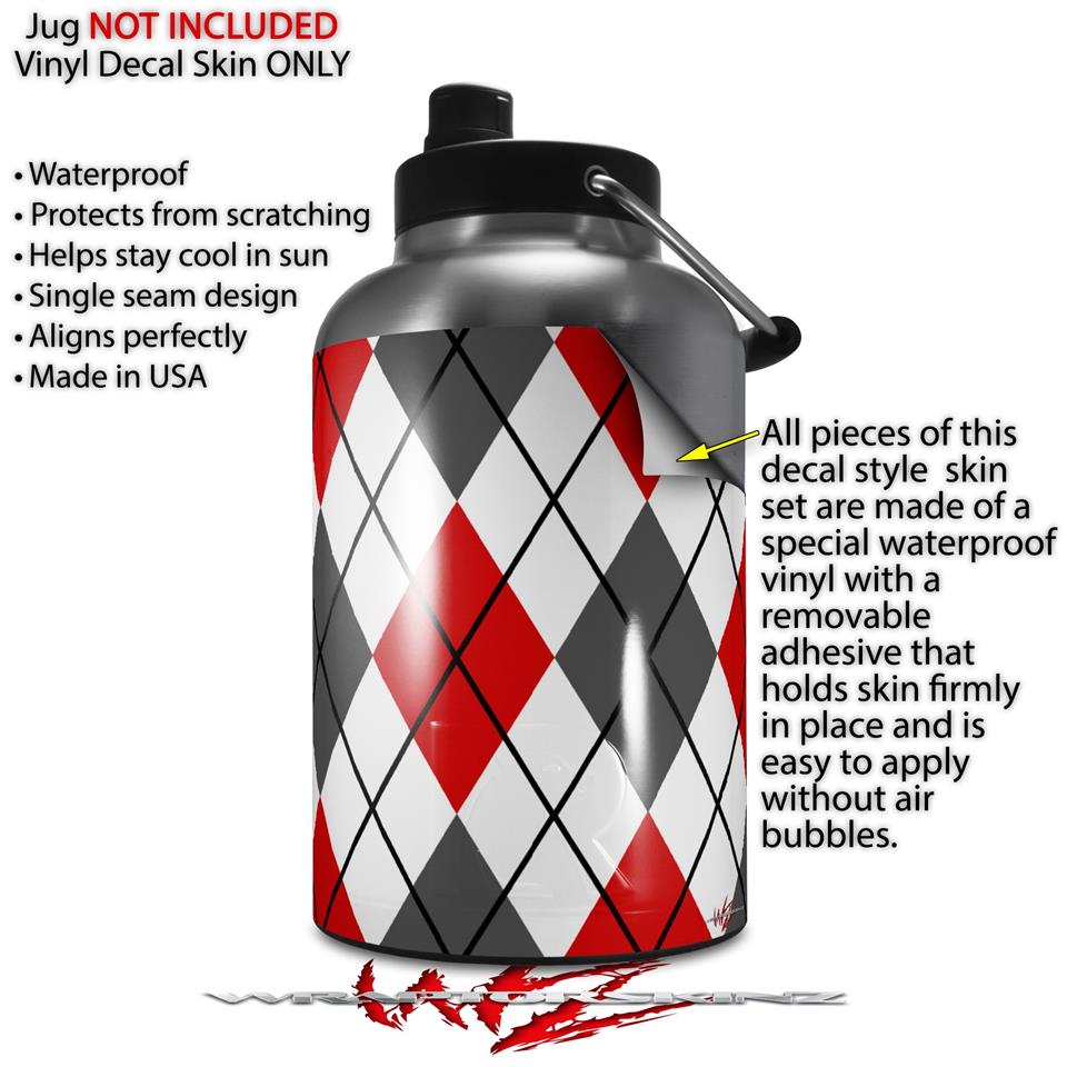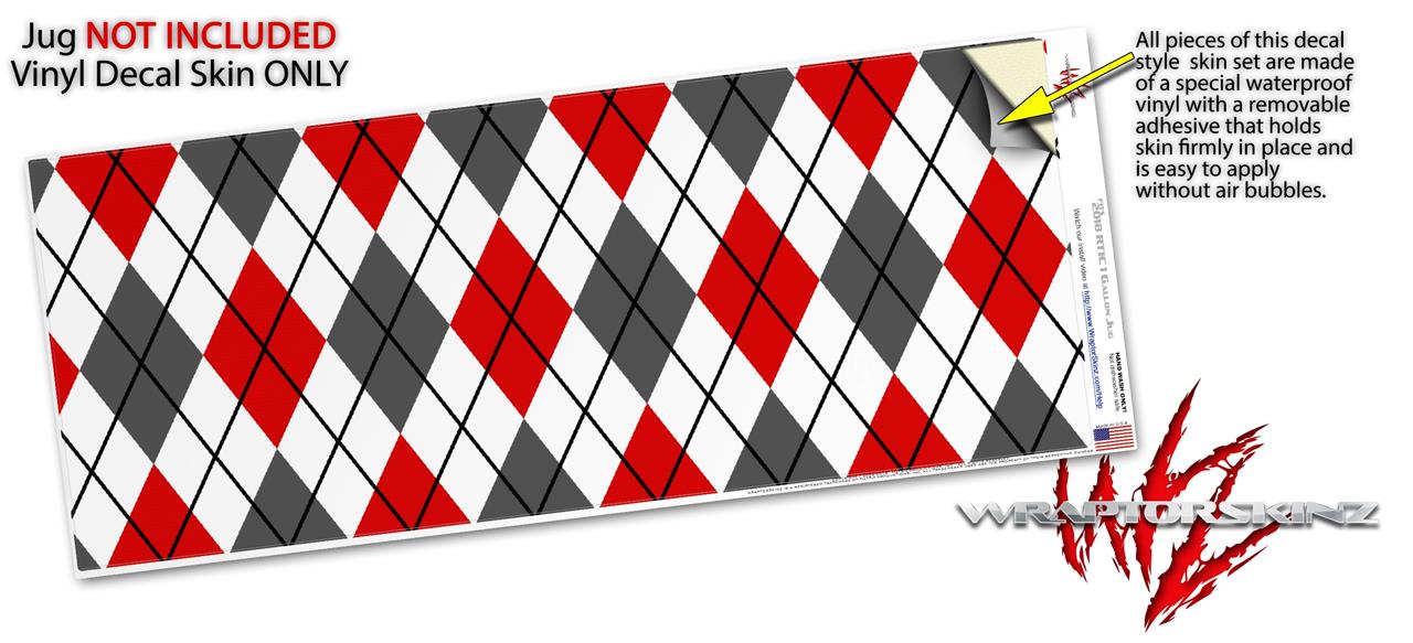 Skin Decal Wrap for 2017 RTIC One Gallon Jug Argyle Red and Gray (Jug NOT INCLUDED) by WraptorSkinz