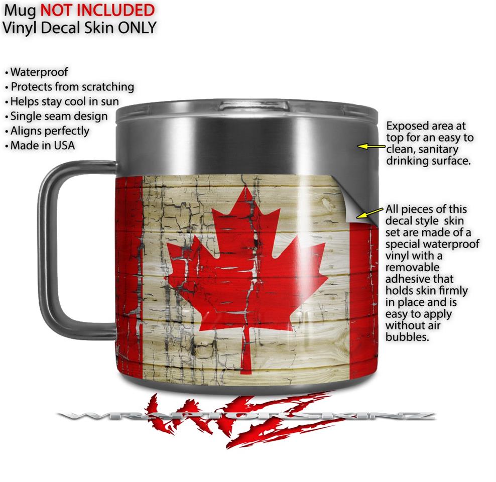 Skin Decal Wrap for Yeti Coffee Mug 14oz Painted Faded and Cracked Canadian Canada Flag - 14 oz CUP NOT INCLUDED by WraptorSkinz