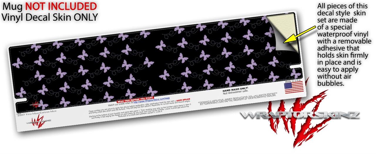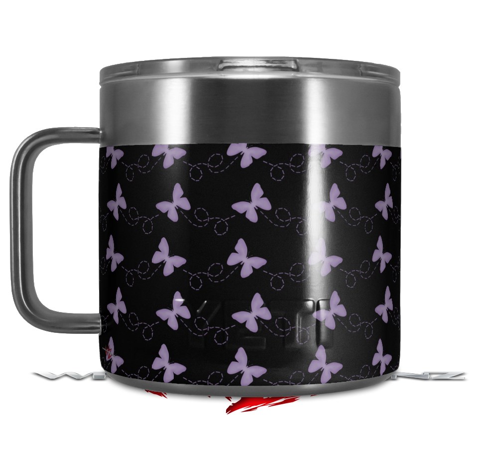 Skin Decal Wrap for Yeti Coffee Mug 14oz Pastel Butterflies Purple on Black - 14 oz CUP NOT INCLUDED by WraptorSkinz