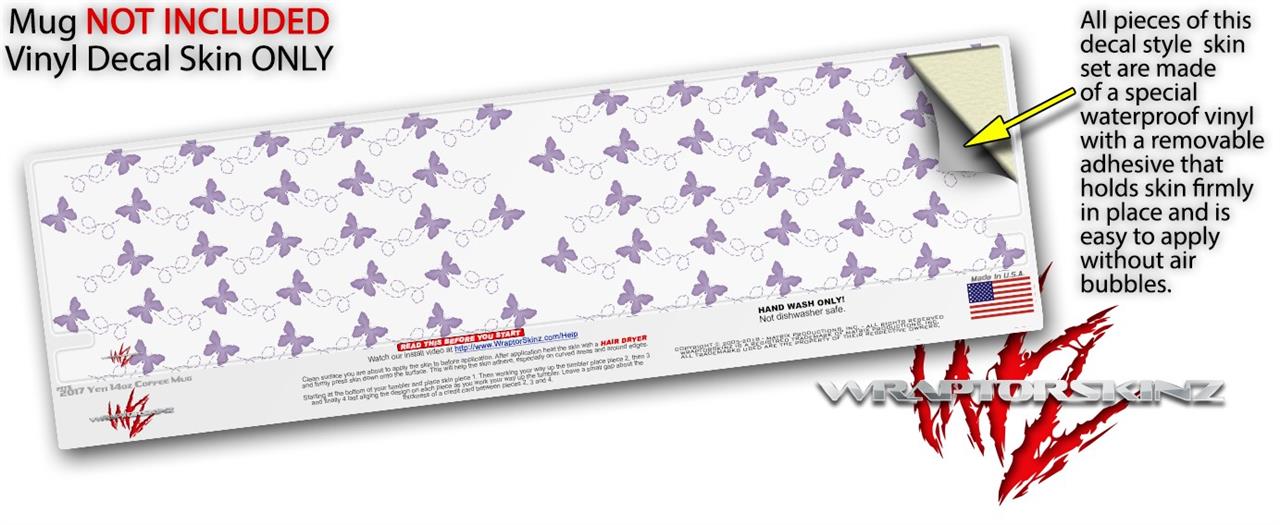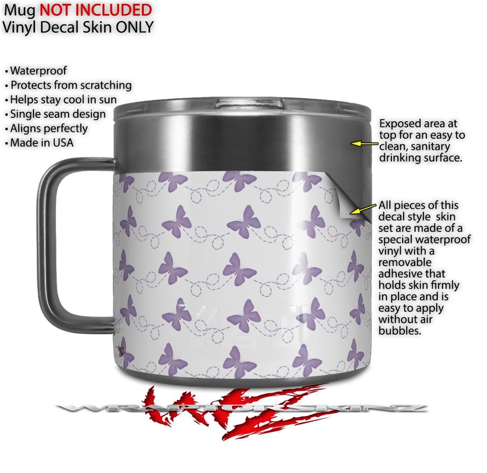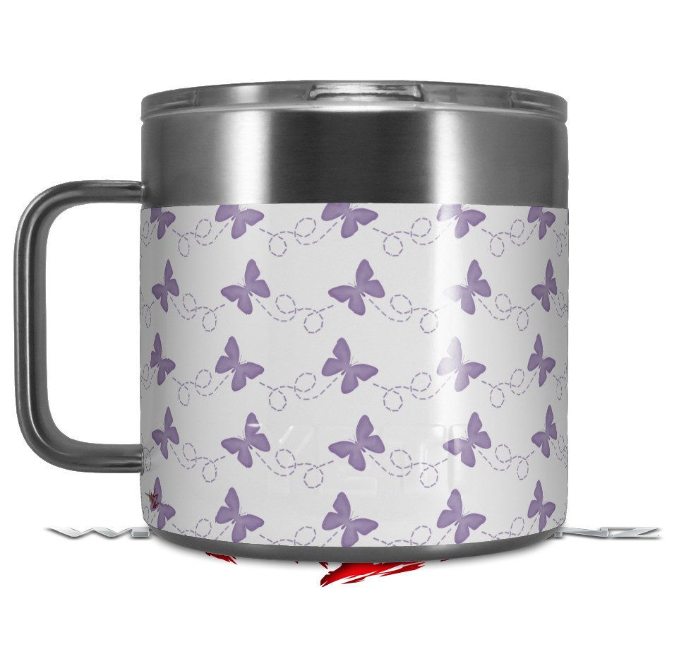 Skin Decal Wrap for Yeti Coffee Mug 14oz Pastel Butterflies Purple on White - 14 oz CUP NOT INCLUDED by WraptorSkinz
