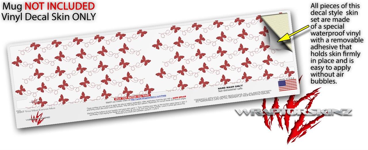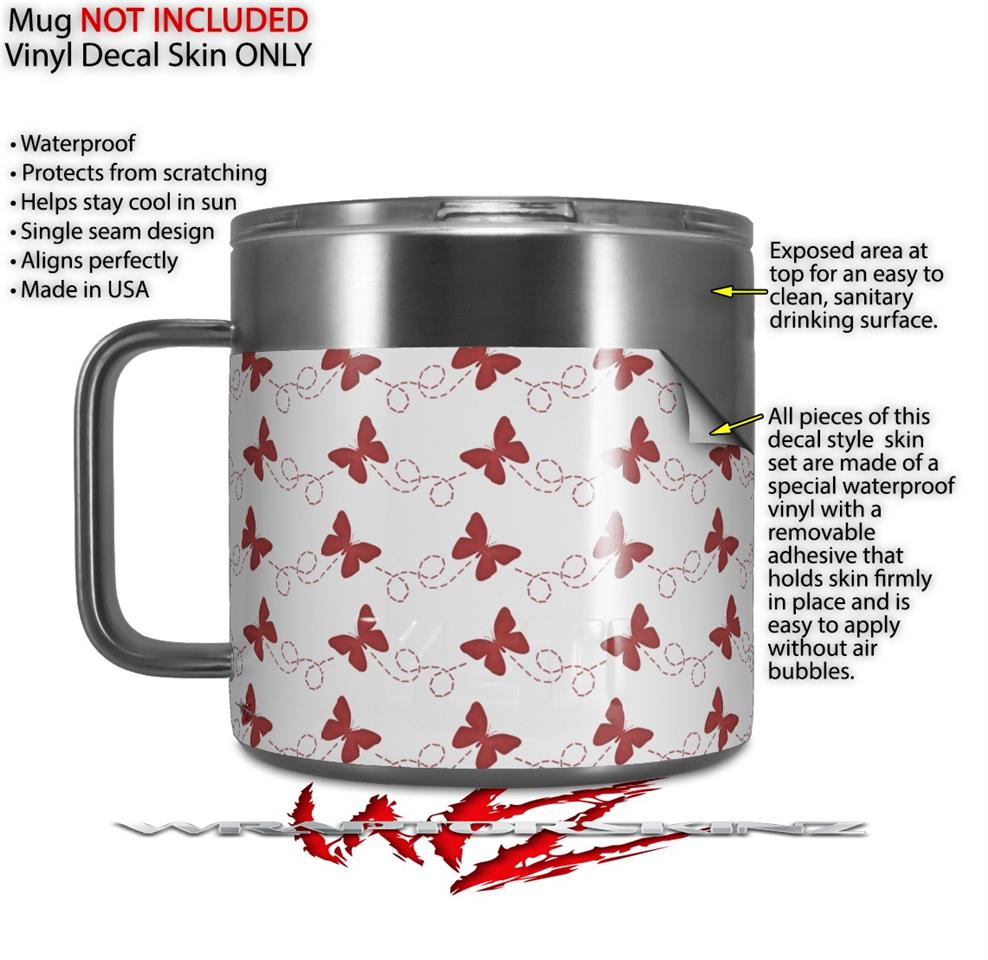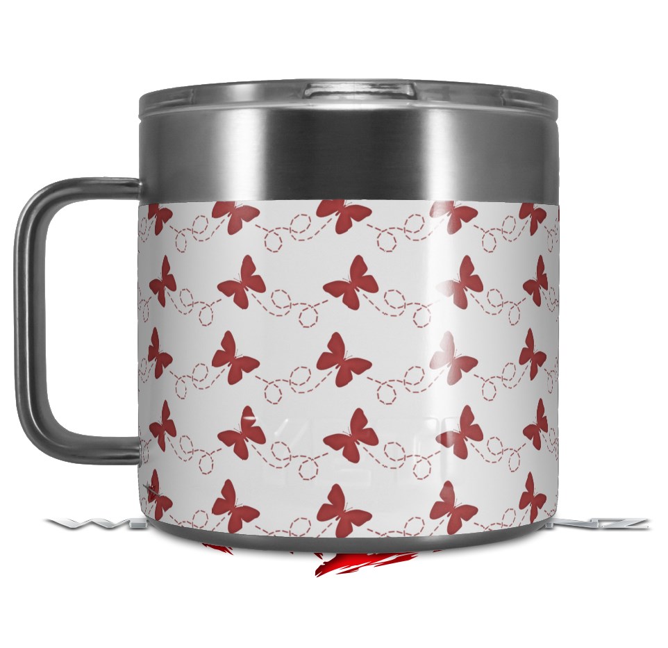 Skin Decal Wrap for Yeti Coffee Mug 14oz Pastel Butterflies Red on White - 14 oz CUP NOT INCLUDED by WraptorSkinz