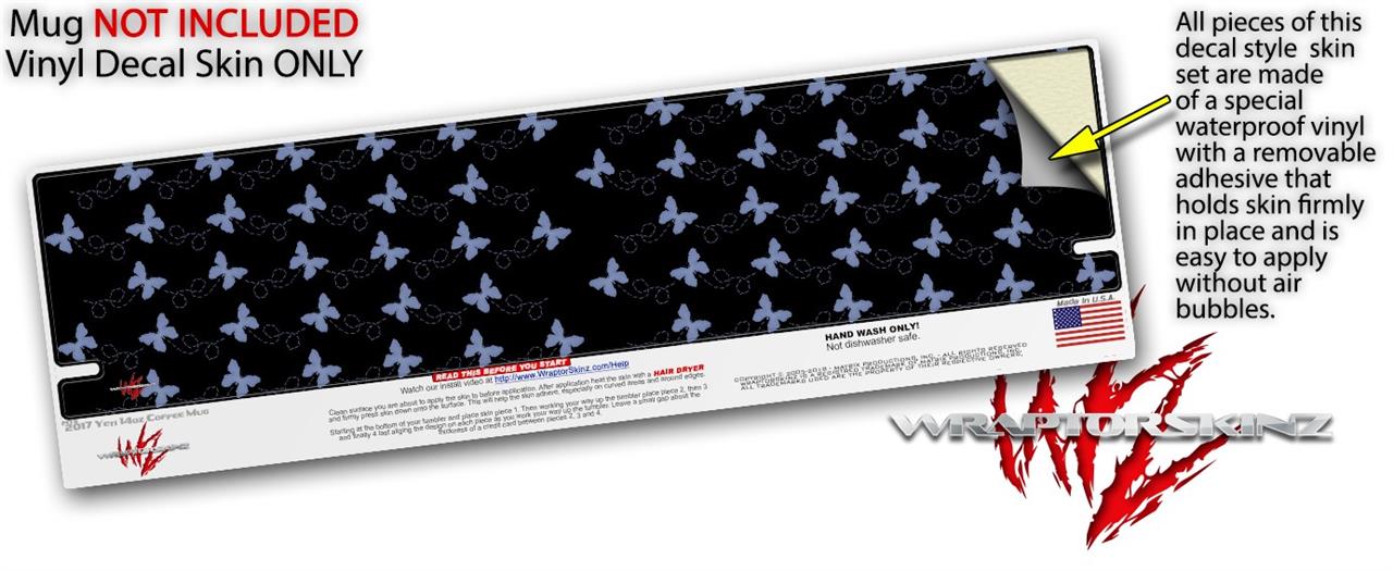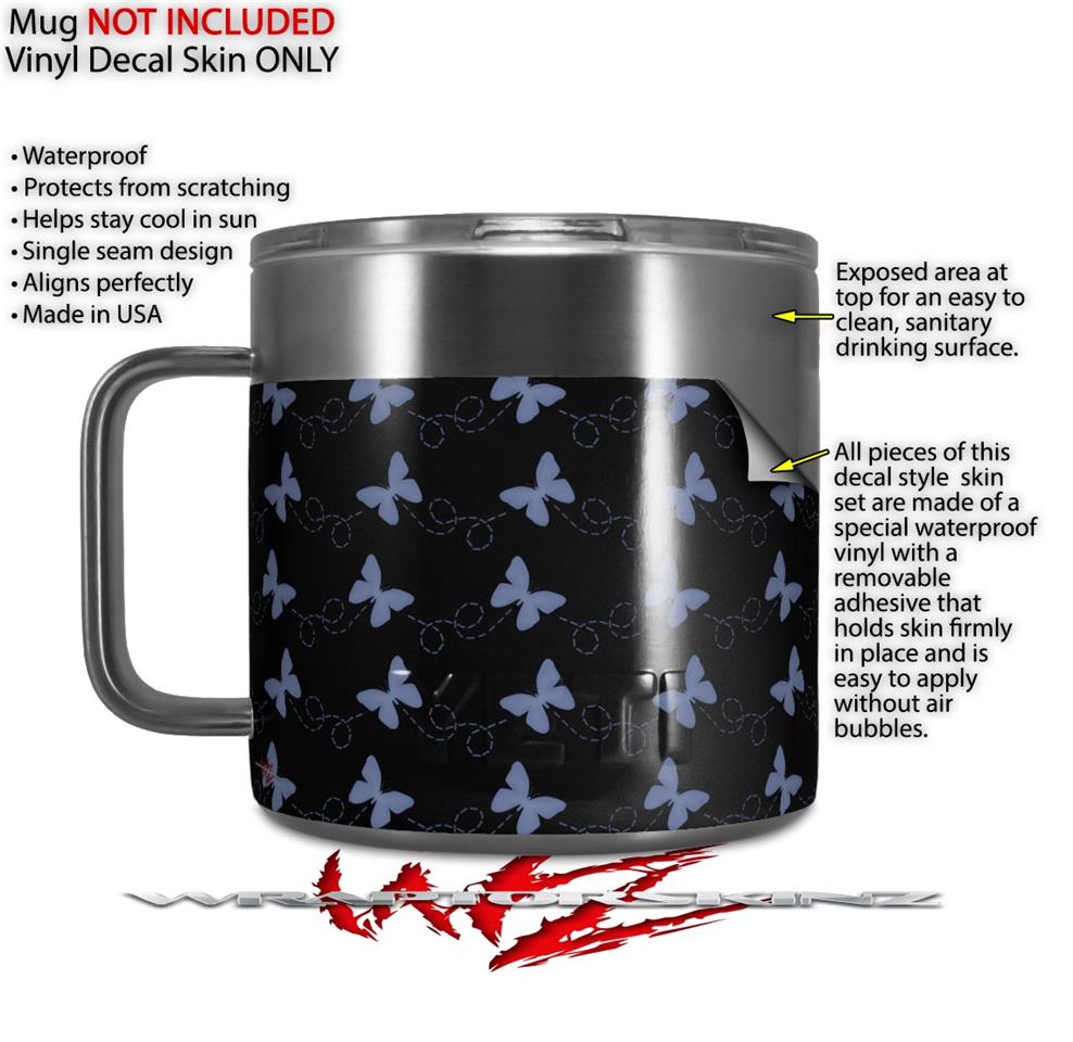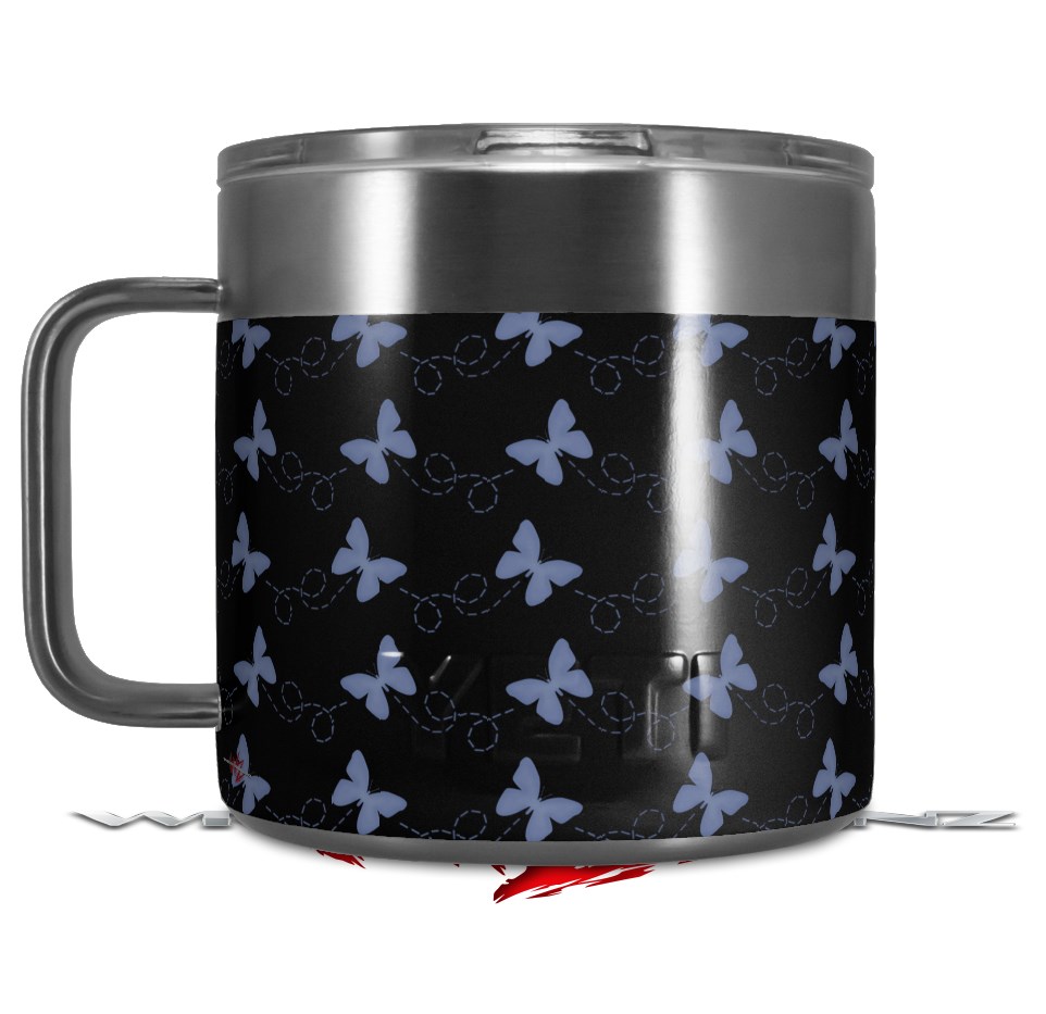 Skin Decal Wrap for Yeti Coffee Mug 14oz Pastel Butterflies Blue on Black - 14 oz CUP NOT INCLUDED by WraptorSkinz