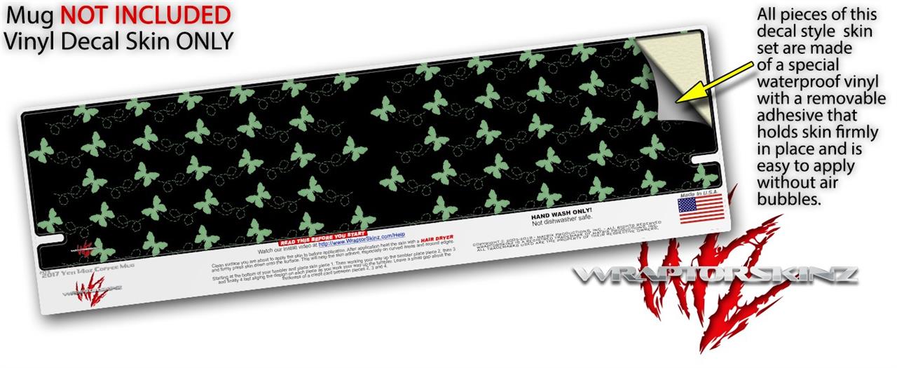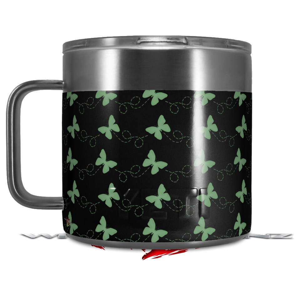 Skin Decal Wrap for Yeti Coffee Mug 14oz Pastel Butterflies Green on Black - 14 oz CUP NOT INCLUDED by WraptorSkinz