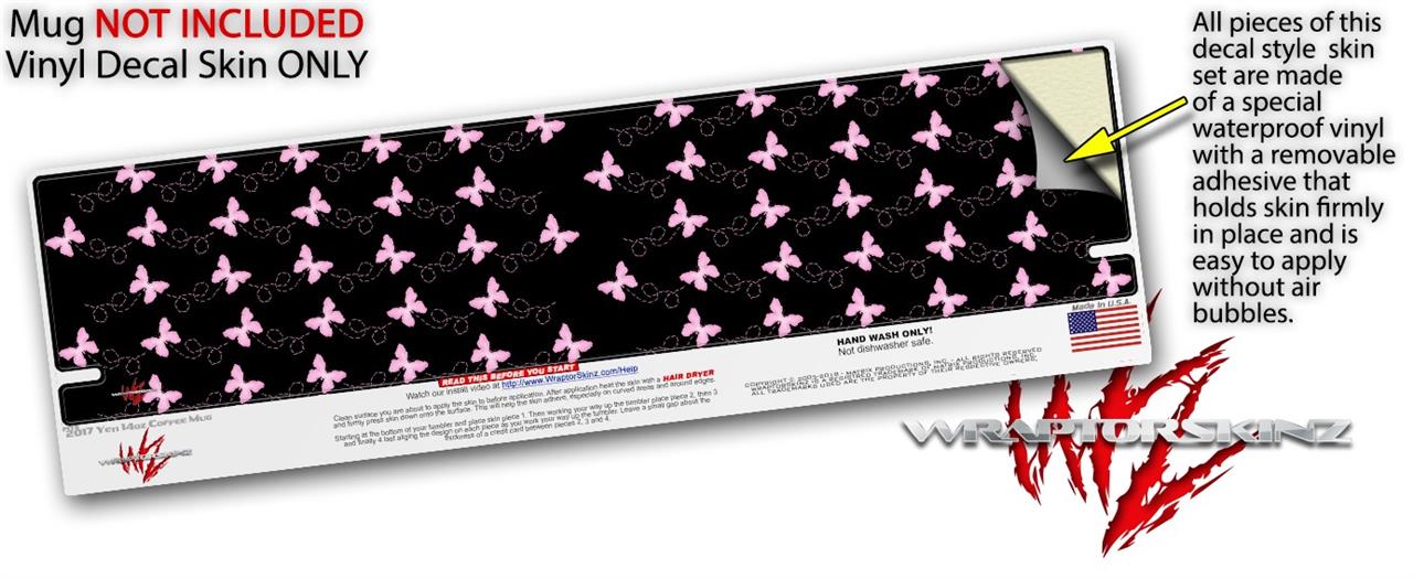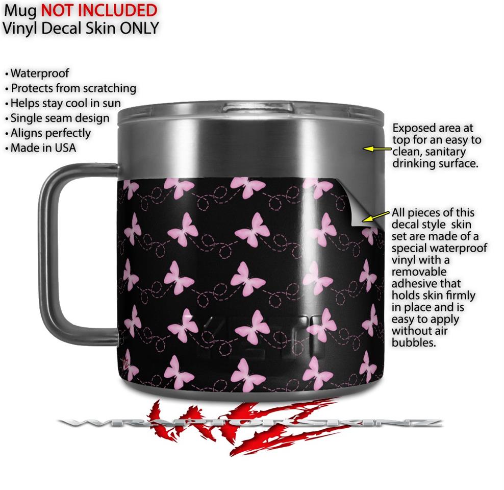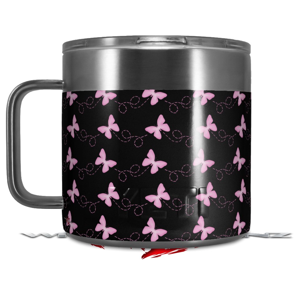Skin Decal Wrap for Yeti Coffee Mug 14oz Pastel Butterflies Pink on Black - 14 oz CUP NOT INCLUDED by WraptorSkinz