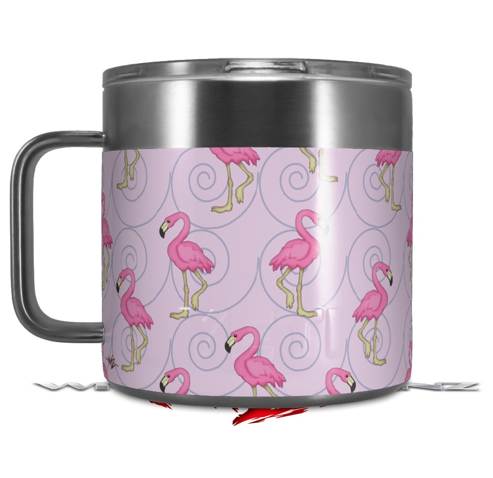 Skin Decal Wrap for Yeti Coffee Mug 14oz Flamingos on Pink - 14 oz CUP NOT INCLUDED by WraptorSkinz