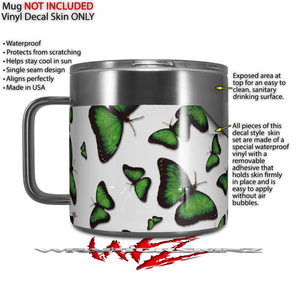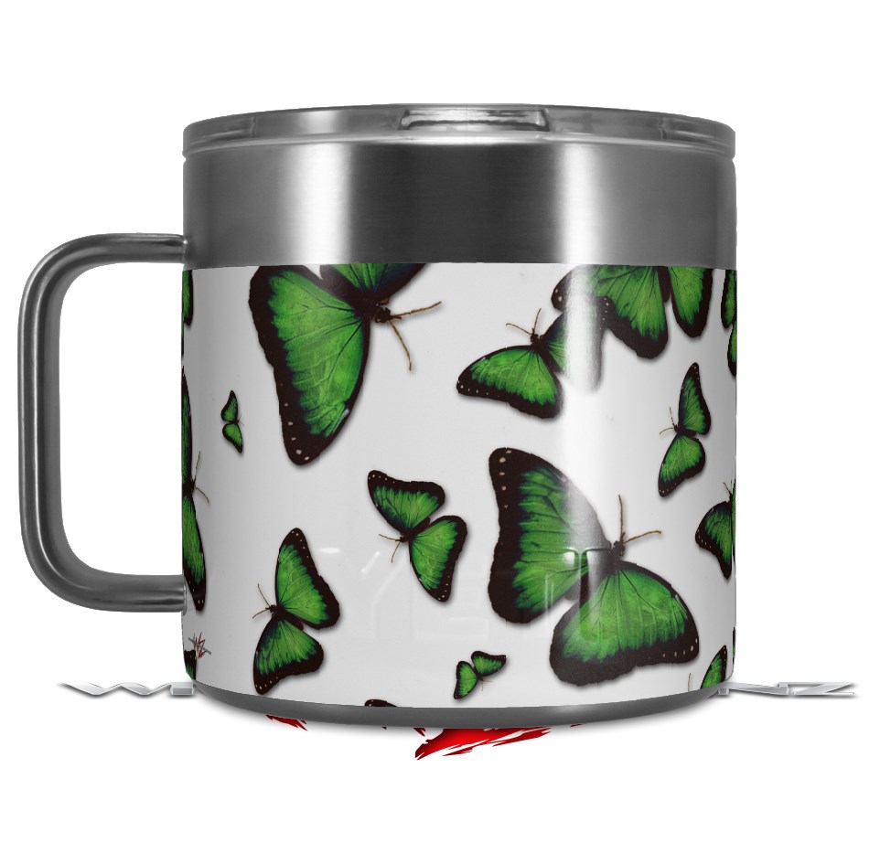 Skin Decal Wrap for Yeti Coffee Mug 14oz Butterflies Green - 14 oz CUP NOT INCLUDED by WraptorSkinz