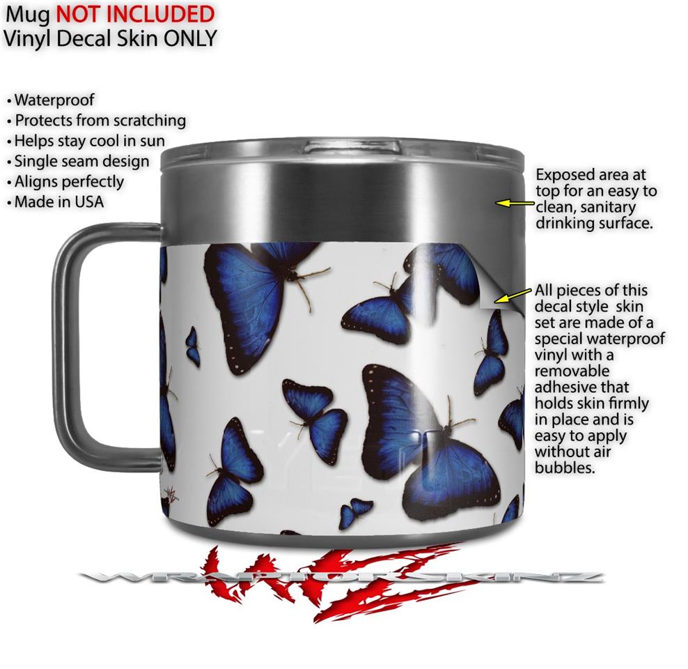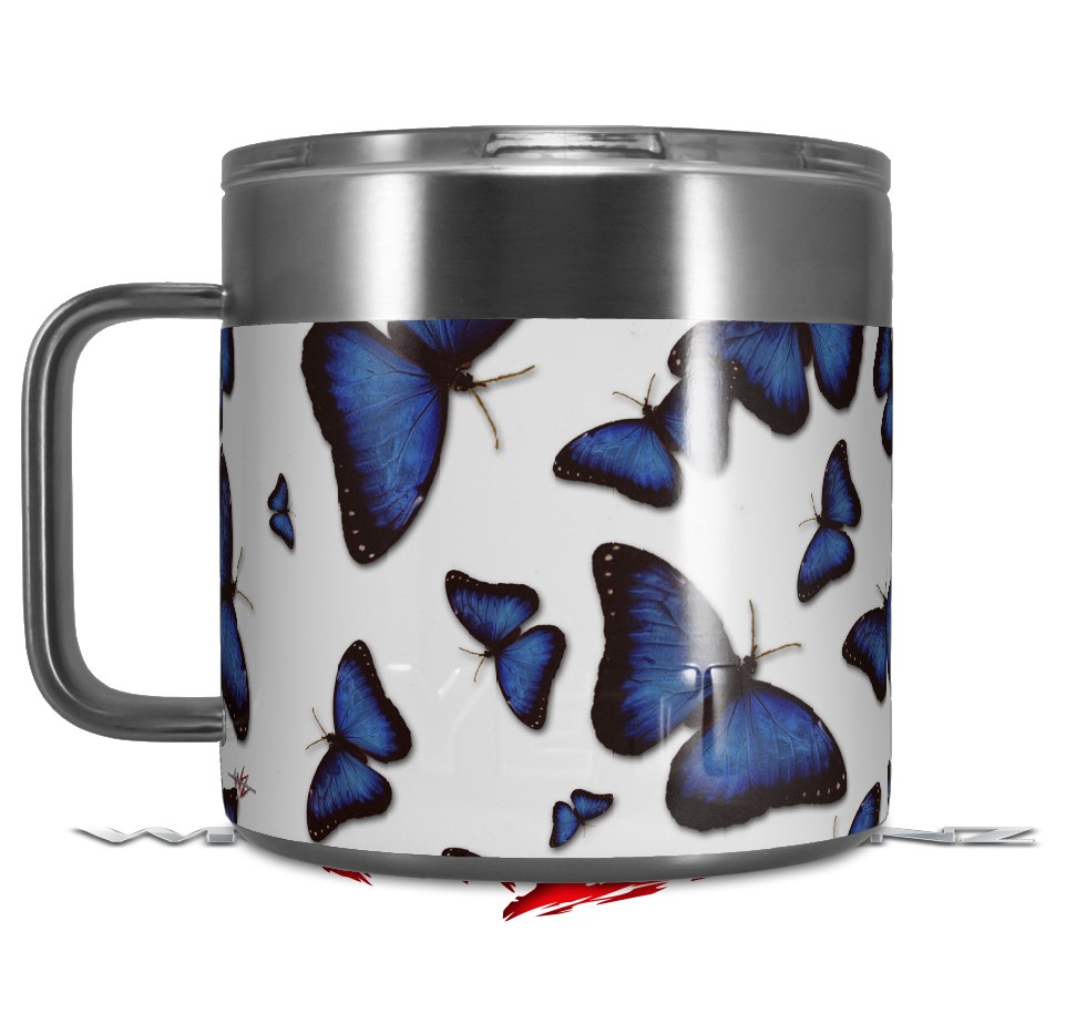 Skin Decal Wrap for Yeti Coffee Mug 14oz Butterflies Blue - 14 oz CUP NOT INCLUDED by WraptorSkinz
