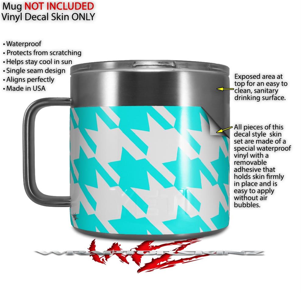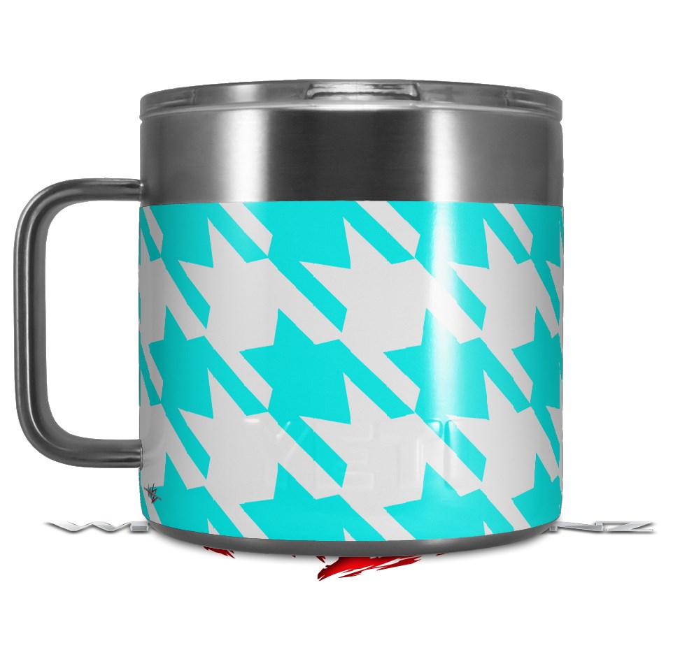 Skin Decal Wrap for Yeti Coffee Mug 14oz Houndstooth Neon Teal - 14 oz CUP NOT INCLUDED by WraptorSkinz