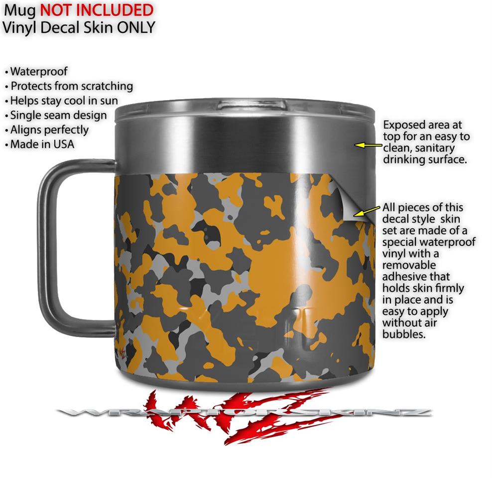 Skin Decal Wrap for Yeti Coffee Mug 14oz WraptorCamo Old School Camouflage Camo Orange - 14 oz CUP NOT INCLUDED by WraptorSkinz