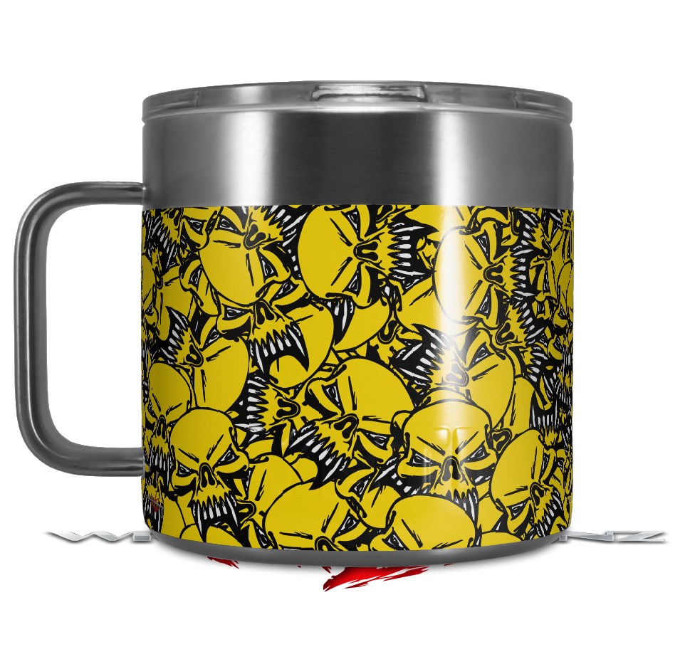 Skin Decal Wrap for Yeti Coffee Mug 14oz Scattered Skulls Yellow - 14 oz CUP NOT INCLUDED by WraptorSkinz