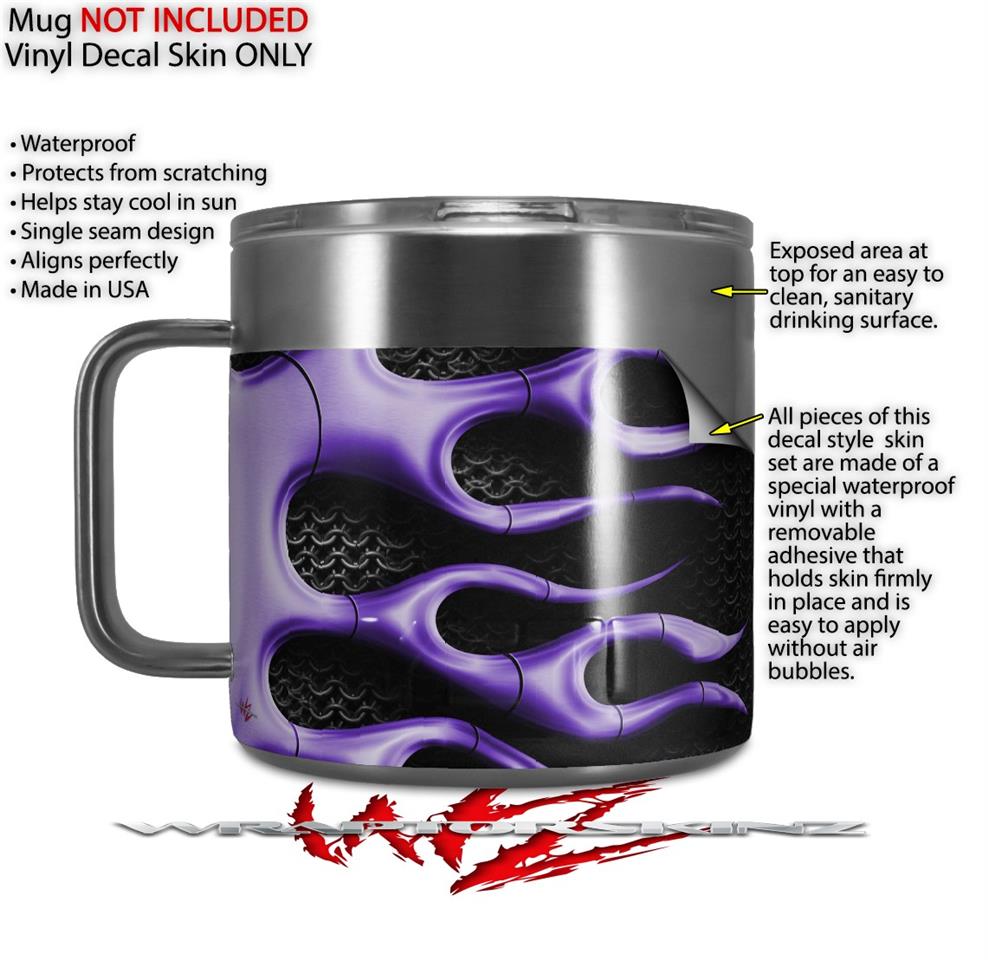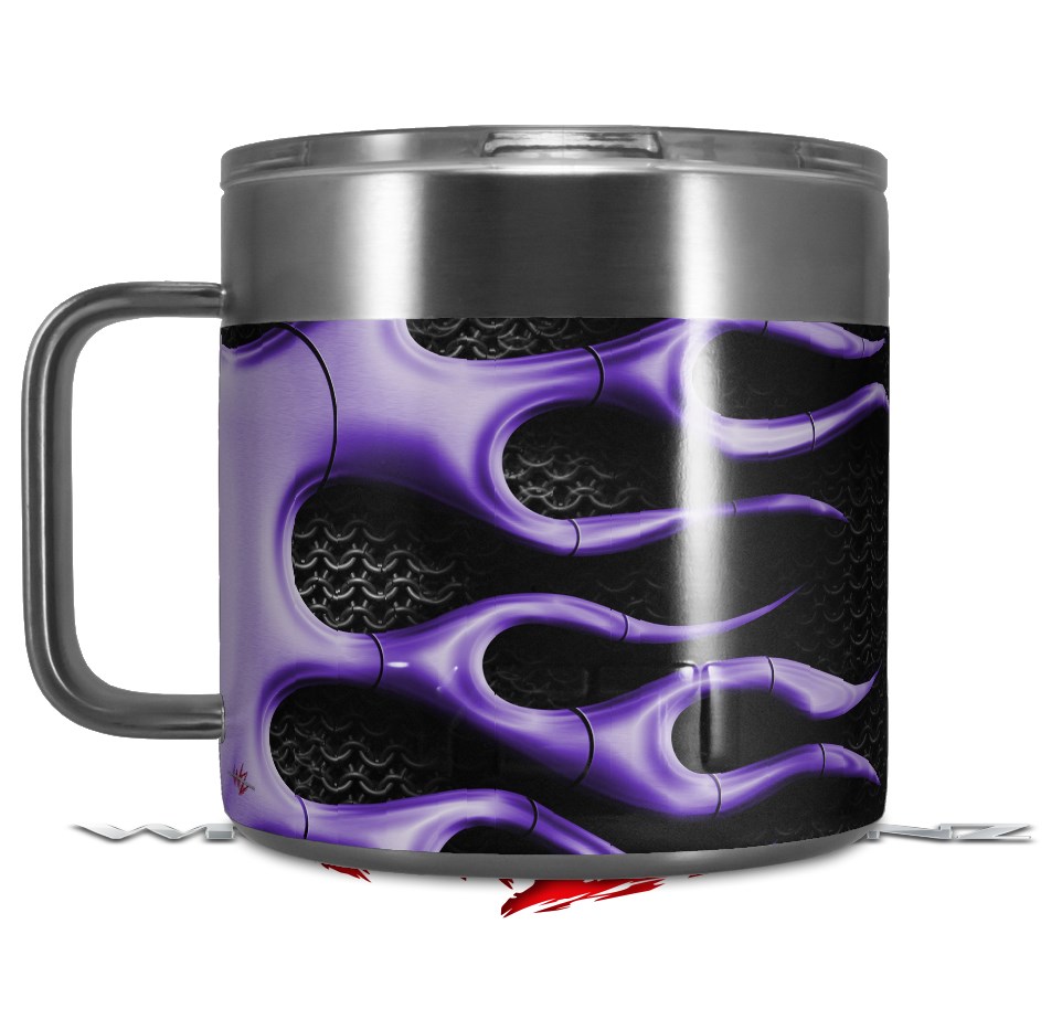 Skin Decal Wrap for Yeti Coffee Mug 14oz Metal Flames Purple - 14 oz CUP NOT INCLUDED by WraptorSkinz