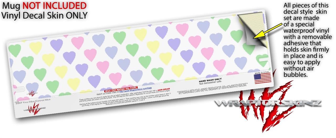 Skin Decal Wrap for Yeti Coffee Mug 14oz Pastel Hearts on White - 14 oz CUP NOT INCLUDED by WraptorSkinz