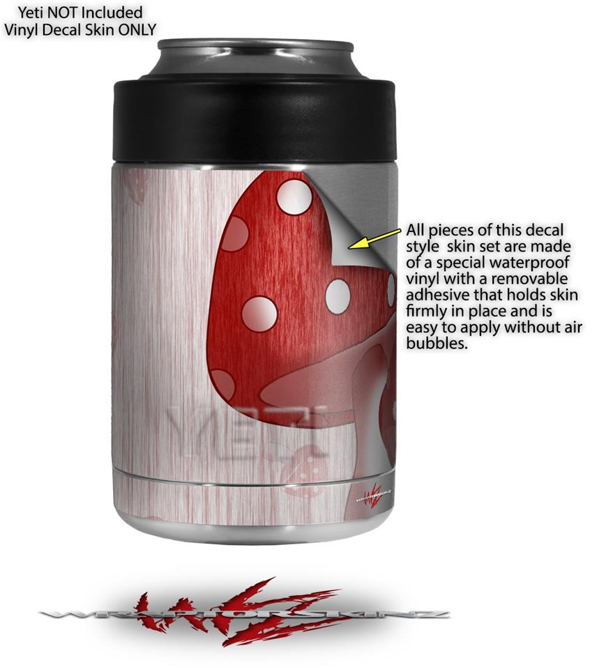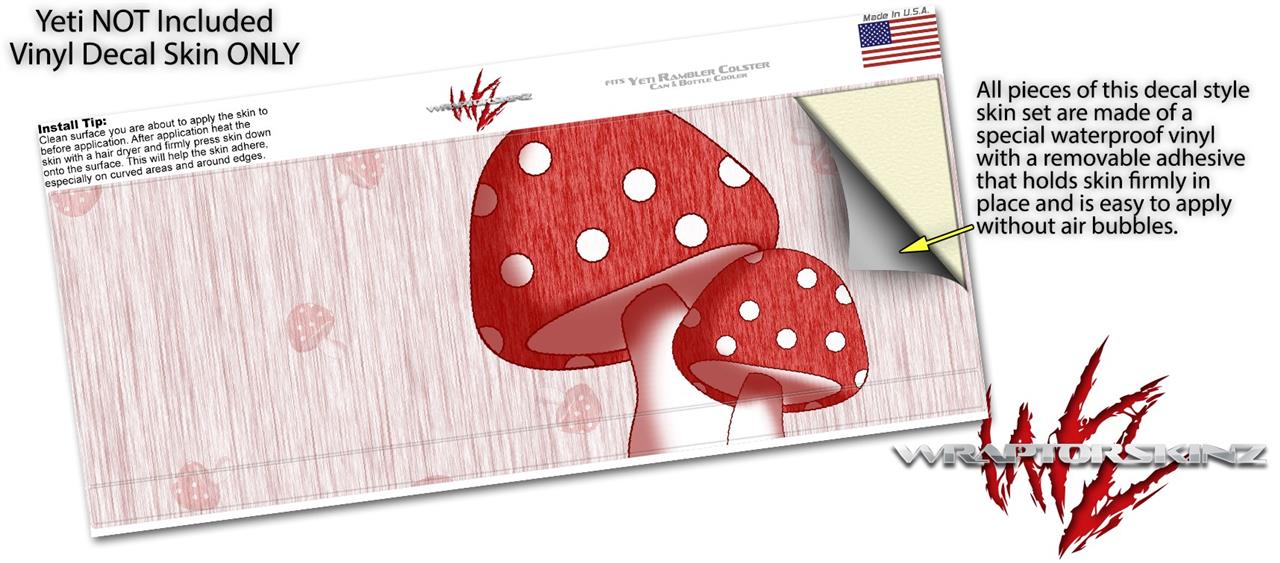 Skin Decal Wrap for Yeti Colster, Ozark Trail and RTIC Can Coolers - Mushrooms Red (COOLER NOT INCLUDED)