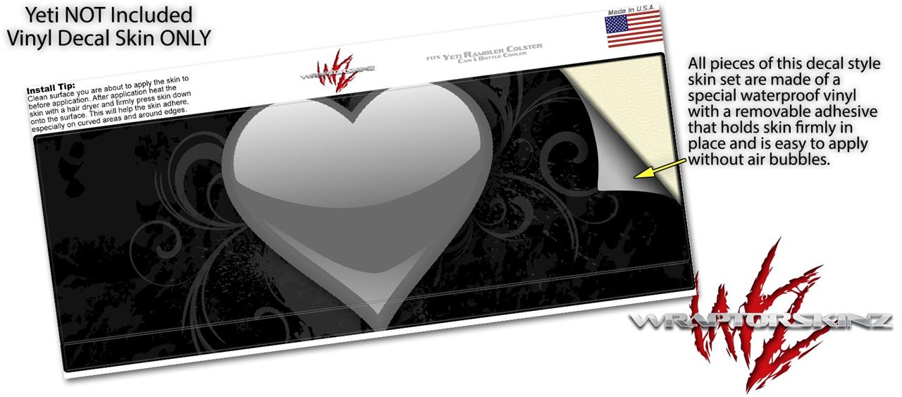 Skin Decal Wrap for Yeti Colster, Ozark Trail and RTIC Can Coolers - Glass Heart Grunge Gray (COOLER NOT INCLUDED)